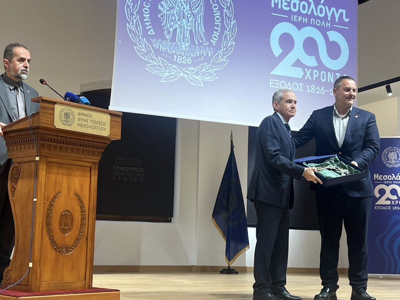 «Σήμερα, Κυριακή 15 Φεβρουαρίου 2026, στο Τρικούπειο Πολιτιστικό Κέντρο, παρέστην κατόπιν τιμητικής προσκλήσεως του Δημάρχου της Ιεράς Πόλεως Μεσολογγίου, Σπυρίδων Διαμαντόπουλος, σε μια ξεχωριστή εκδήλωση αφιερωμένη στη Διακοσιοστή Επέτειο της Εξόδου του Μεσολογγίου.
