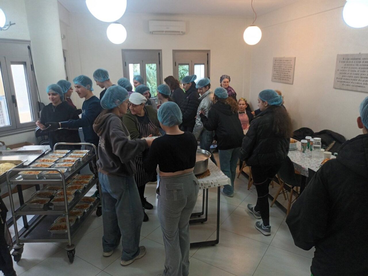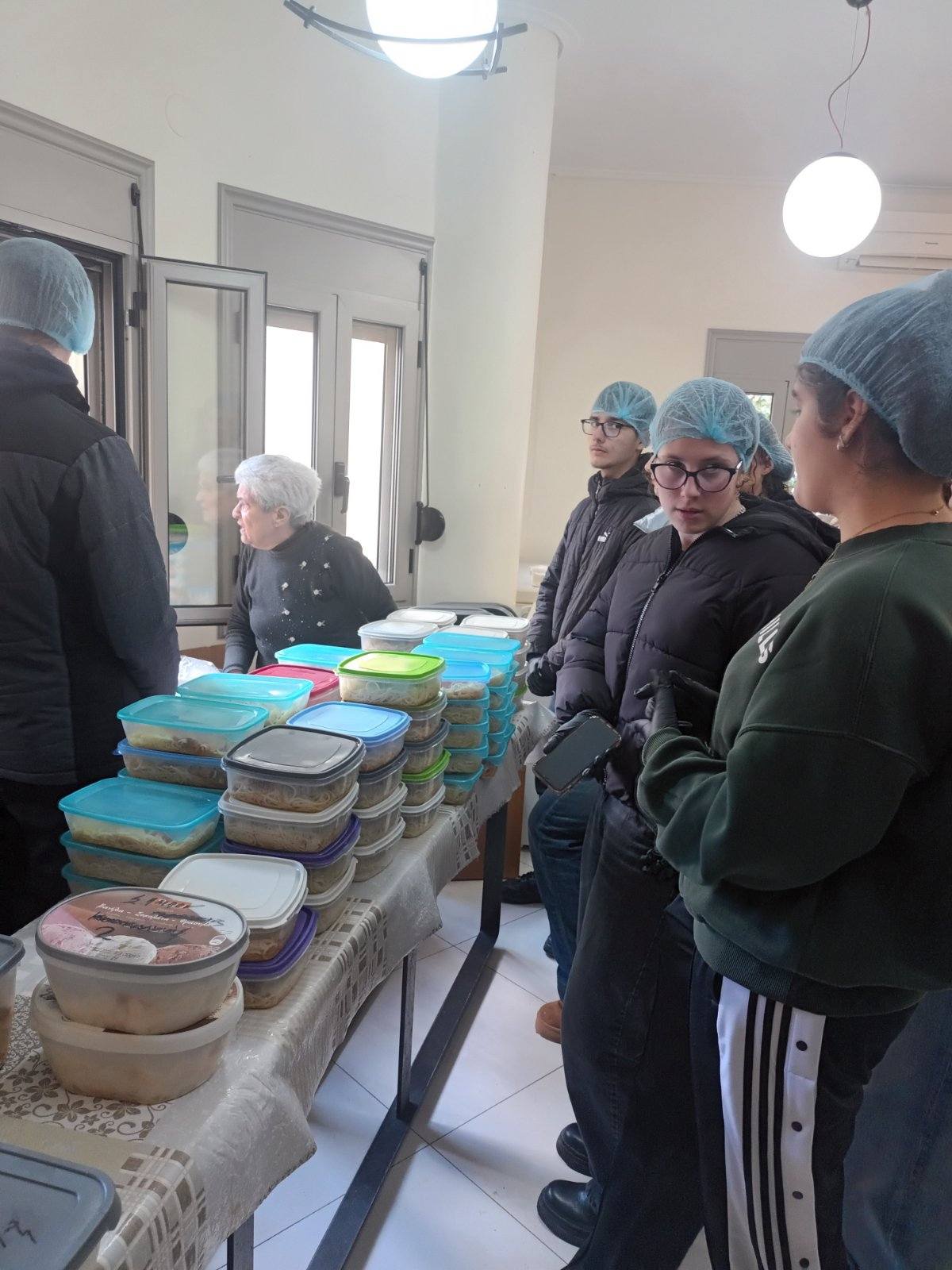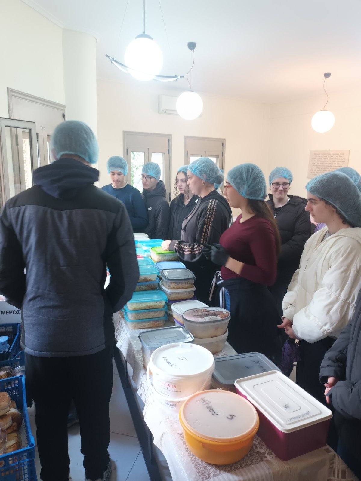 Οι μαθητές συμμετείχαν ενεργά στην προετοιμασία του συσσιτίου, βοηθώντας στο μαγείρεμα, στη συσκευασία και στη διανομή των γευμάτων, βιώνοντας στην πράξη το μήνυμα του εθελοντισμού.