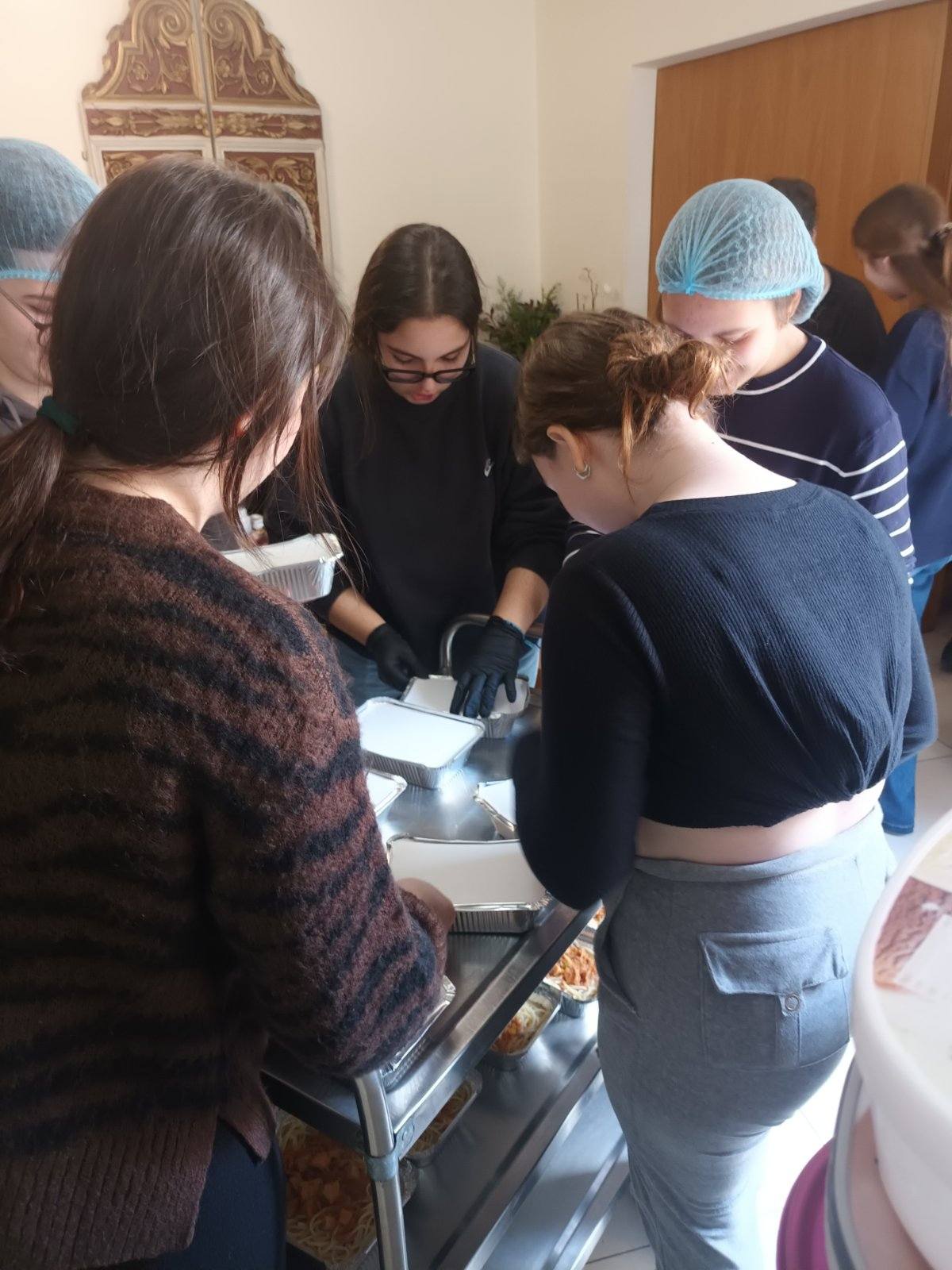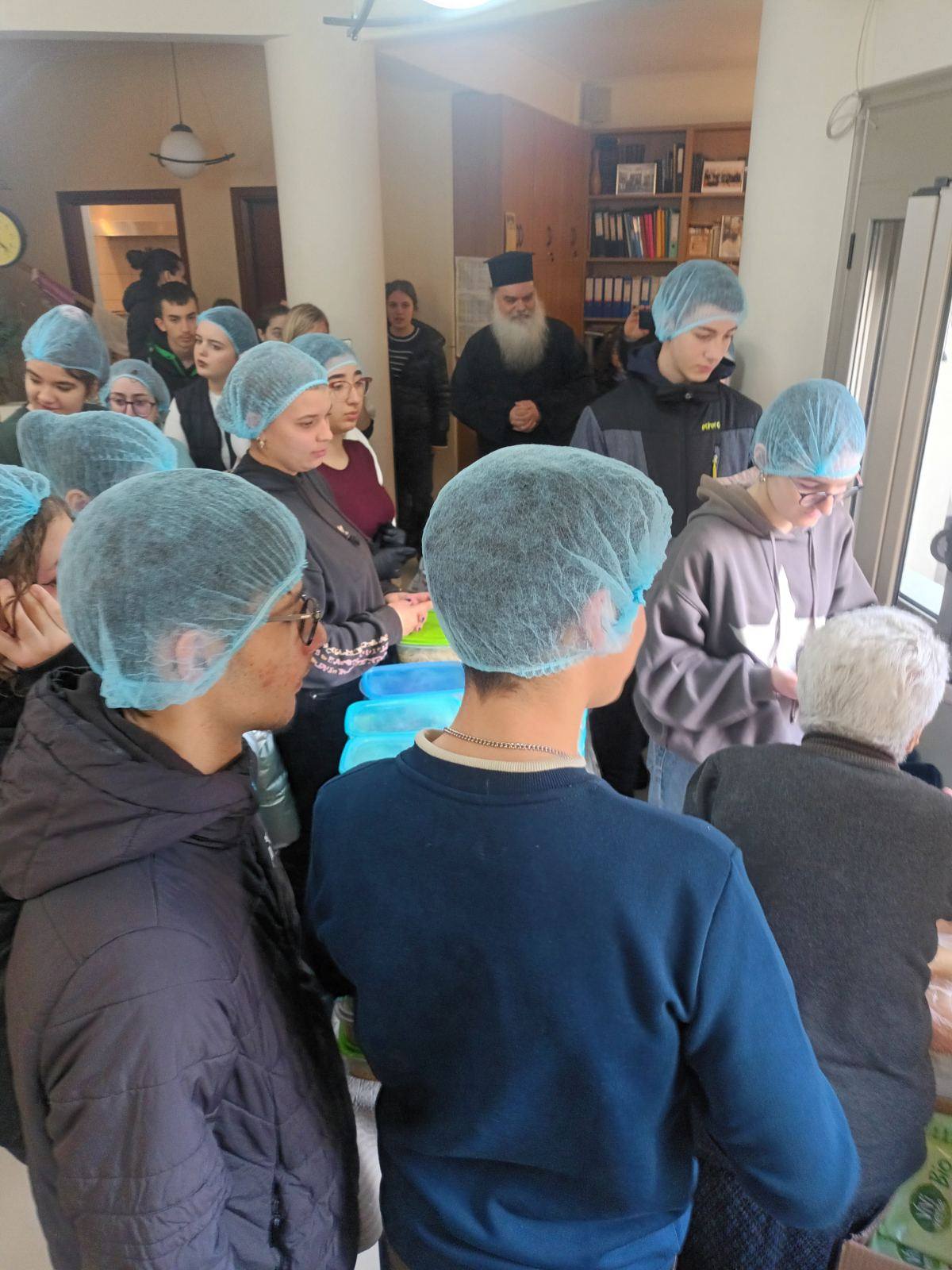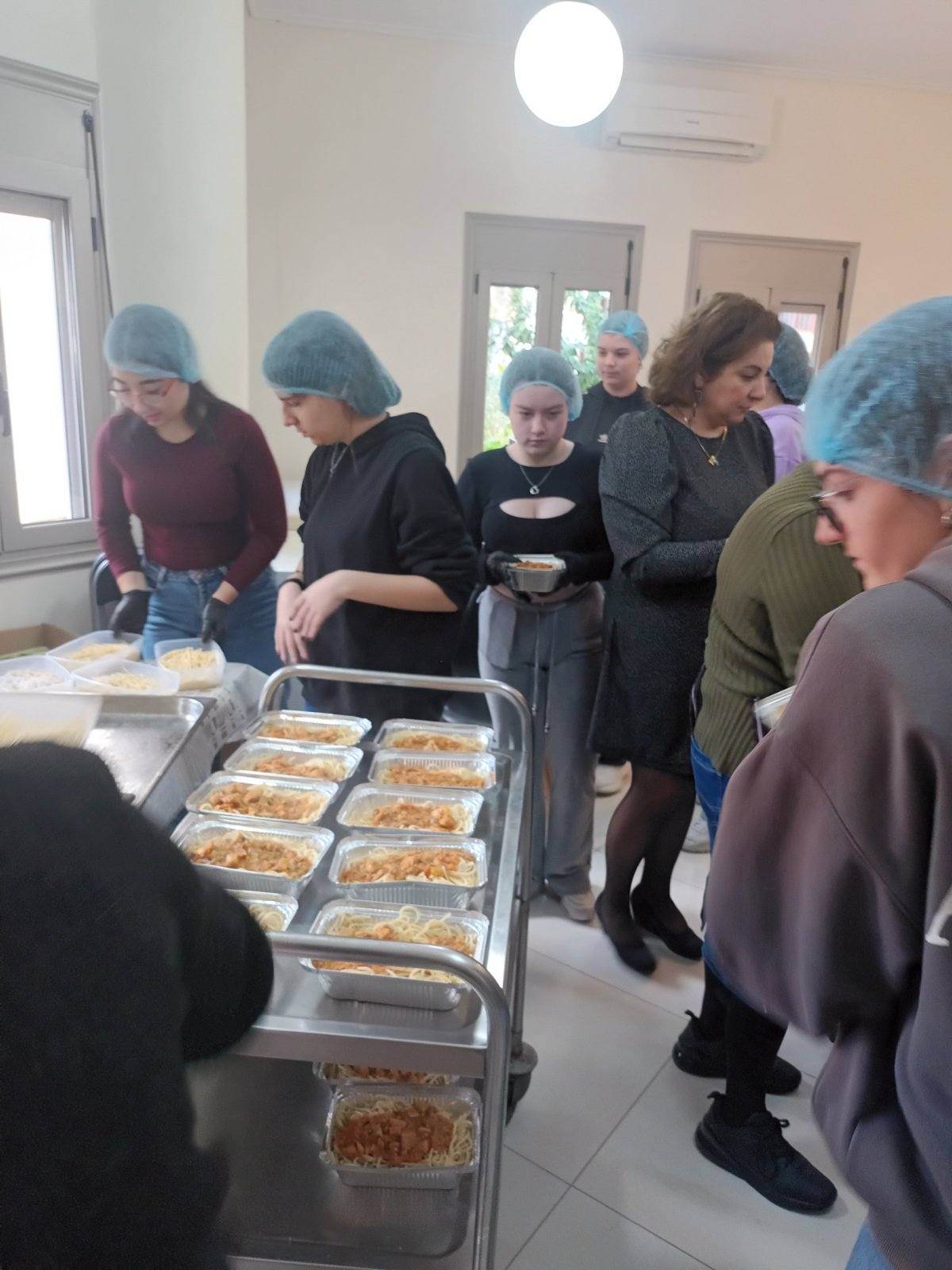 Οι μαθητές συμμετείχαν ενεργά στην προετοιμασία του συσσιτίου, βοηθώντας στο μαγείρεμα, στη συσκευασία και στη διανομή των γευμάτων, βιώνοντας στην πράξη το μήνυμα του εθελοντισμού.