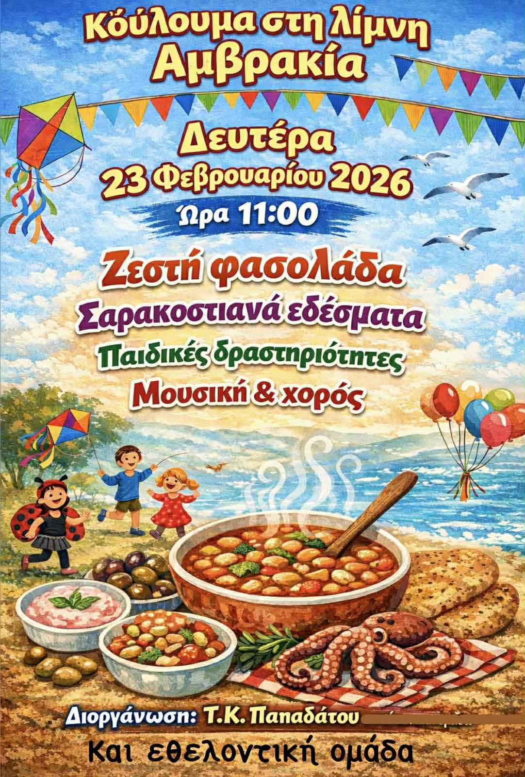 Με γιορτινή διάθεση και φόντο το φυσικό τοπίο της λίμνης Αμβρακίας θα γιορταστούν και φέτος τα Κούλουμα από την Τοπική Κοινότητα Παπαδάτου Ξηρομέρου, τη Δευτέρα 23 Φεβρουαρίου 2026.