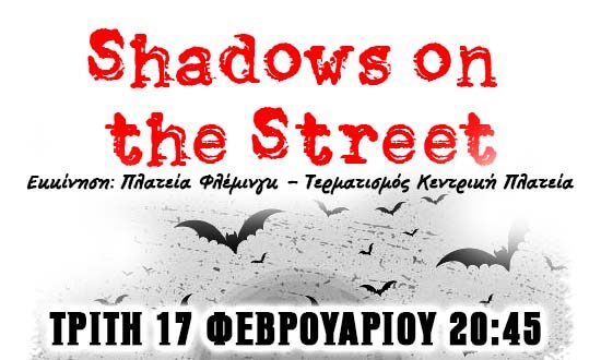 Τα Τμήματα Ενηλίκων του Ερασιτεχνικού Θεάτρου Δήμου Αγρινίου παρουσιάζουν την Τρίτη 17 Φεβρουαρίου 2026, στις 8.45 μ.μ. το πρωτοποριακό δρώμενο SHADOWS ON THE STREET.