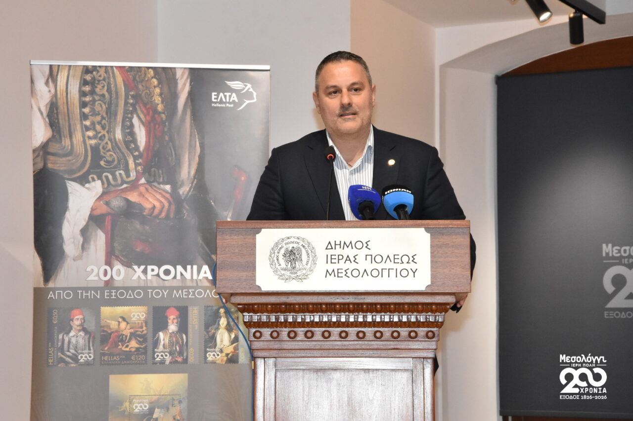 Με ιδιαίτερη επιτυχία και σημαντική προσέλευση κοινού πραγματοποιήθηκε την Κυριακή 15 Φεβρουαρίου 2026, στο Τρικούπειο Πολιτιστικό Κέντρο του Μεσολογγίου, η επίσημη παρουσίαση της Αναμνηστικής Σειράς Γραμματοσήμων – Φεγιέ με τίτλο «200 Χρόνια από την Έξοδο του Μεσολογγίου», στο πλαίσιο των επετειακών εκδηλώσεων της Διακοσιοστής Επετείου της Εξόδου που οργανώνει ο Δήμος Ιεράς Πόλεως Μεσολογγίου.