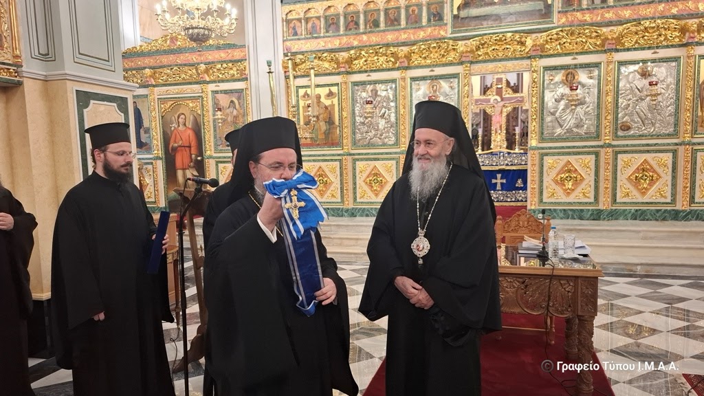 «Είμαστε βέβαιοι, ότι είστε και αισθάνεσθε οικείος σε έναν τόπο που σας αγαπάει και τον αγαπάτε πολύ, σε μια Ιερά Μητρόπολη, την οποία την γνωρίζετε καλά, αφού την υπηρετήσατε και ως Τοποτηρητής για ένα ολόκληρο σχεδόν έτος. Σήμερα, θα απευθυνθείτε στο ιερό σώμα των Κληρικών της τοπικής μας Εκκλησίας, τους οποίους αγαπάτε, πολλοί εξ αυτών έλαβαν την χάρη της Ιερωσύνης από τα τίμια χέρια σας και με τους περισσότερους εξ αυτών συνεργαστήκατε άψογα κατά την διάρκεια της ευλογημένης Τοποτηρητείας σας.