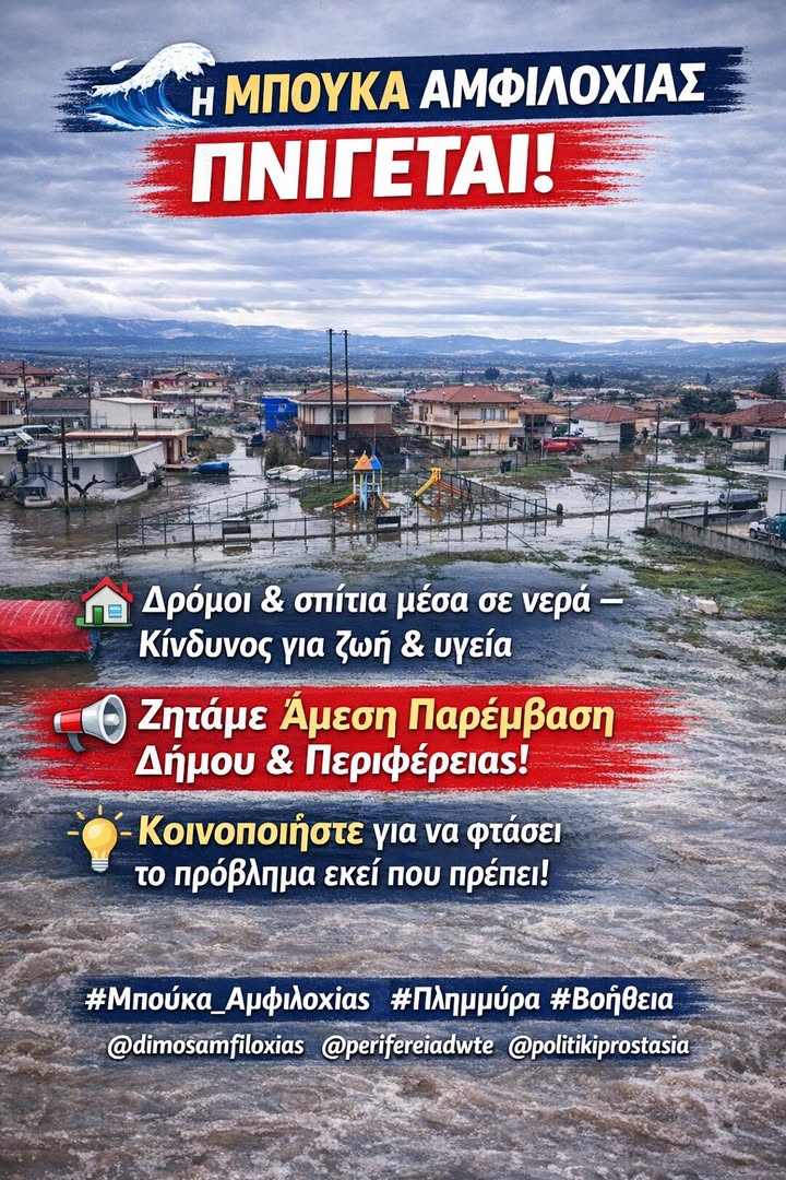 Οι κάτοικοι έχουμε ήδη καταθέσει επίσημη αναφορά στον Δήμο Αμφιλοχίας και πραγματοποιήσαμε διαμαρτυρία στο Δημαρχείο. Παρ’ όλα αυτά, μέχρι σήμερα δεν έχει υπάρξει καμία ουσιαστική παρέμβαση αποστράγγισης ή τεχνική λύση.