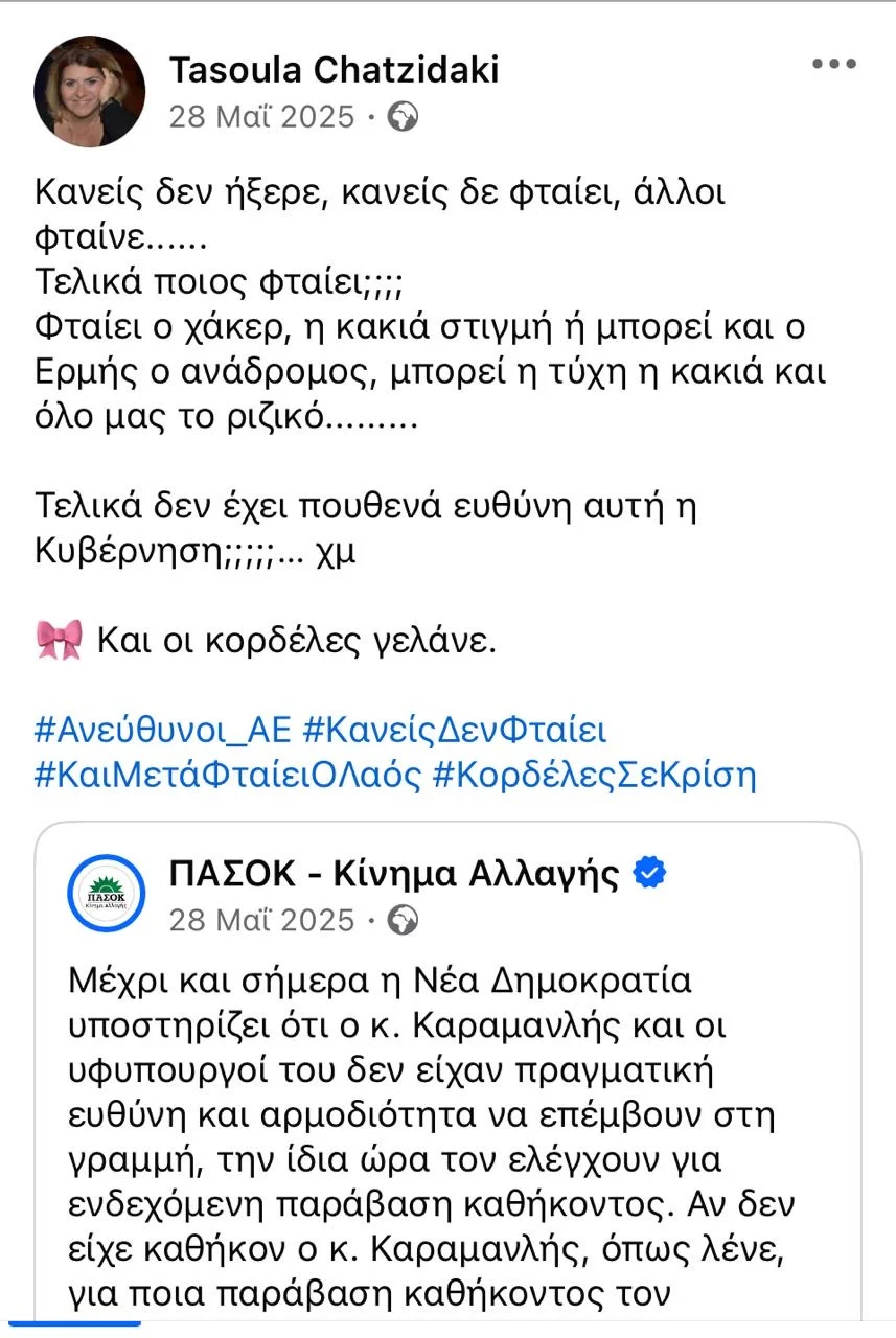 Η σφοδρή κριτική μέσω αναρτήσεων στην κυβέρνηση για ΟΠΕΚΕΠΕ