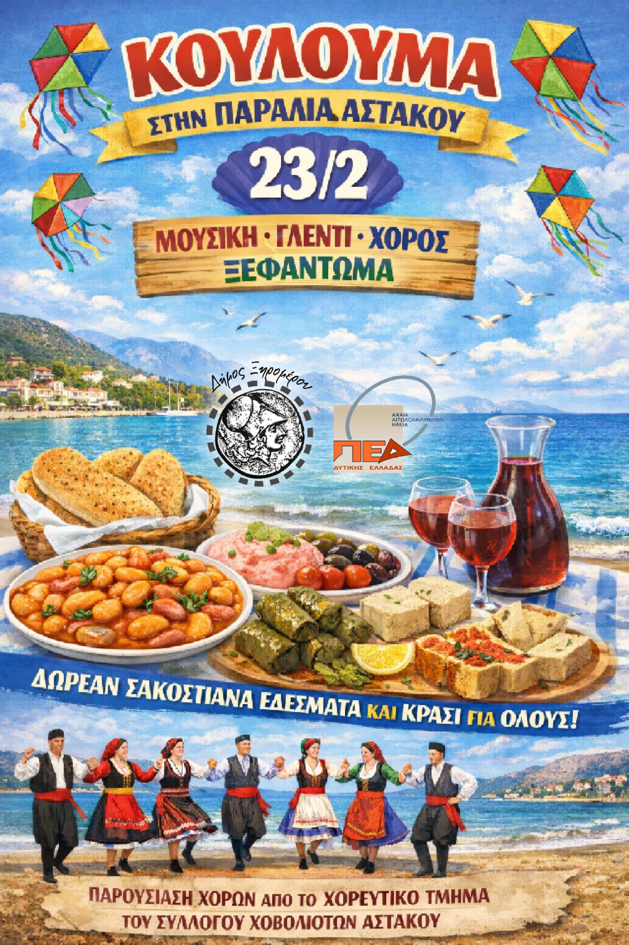 Ένα πλούσιο πρόγραμμα ετοίμασε ο Αστακός Ξηρομέρου για το Αστακιώτικο Καρναβάλι 2026, με ένα ξέφρενο τριήμερο που περιλαμβάνει street party, μεγάλη καρναβαλική παρέλαση και παραδοσιακά Κούλουμα στην παραλία.