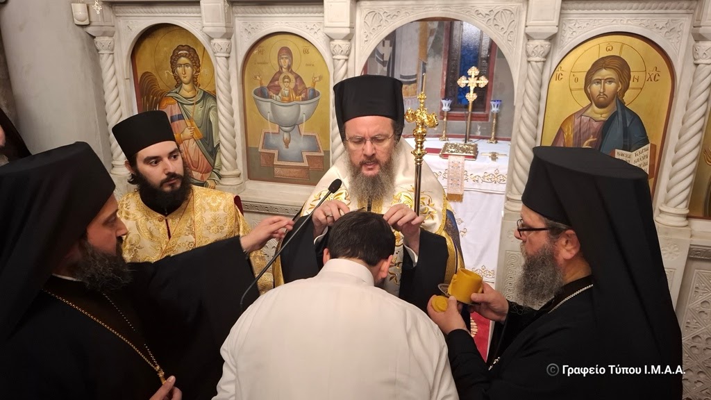 Σε προέτρεψα να μεταπηδήσεις από τον χώρο του Αναλογίου στο Ιερό Θυσιαστήριο. Να γίνεις ποιμένας και να αναλάβεις την ευθύνη να καθοδηγήσεις ψυχές ανθρώπων στον εύδιο λιμένα, που είναι η Βασιλεία των Ουρανών. Με εμπιστεύθηκες και σήμερα, με χαρά μεγάλη και πατρική στοργή, θα θέσω την χείρα μου επάνω στην κεφαλή σου και, δια του Ιερού Ωμοφορίου, θα κατέλθει η Χάρις του Παρακλήτου και θα σου προσφέρει την Ιερωσύνη του Χριστού, που δεν είναι ούτε επιβράβευση, ούτε απόκτημα, αλλά είναι δωρεά και ευεργεσία του Θεού.