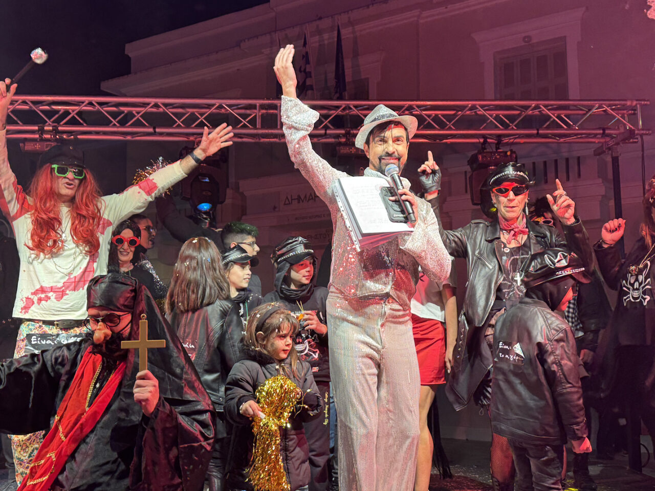 Ξεχωριστή αναφορά αξίζει στην εξαιρετική παρουσίαση του φετινού καρναβαλιού από τον Κωνσταντίνο Μενούνο, που συνέβαλε καθοριστικά στη ζωντάνια της εκδήλωσης