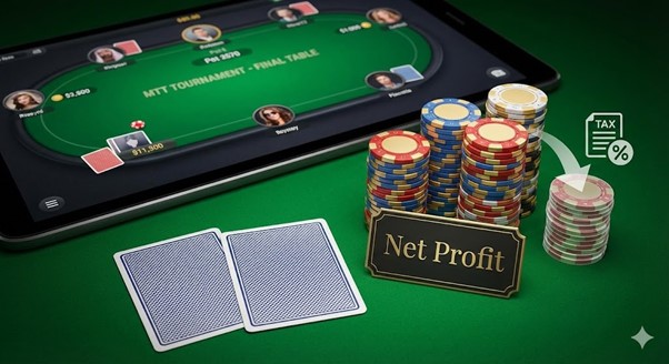 Στα MTT (Multi-Table Tournaments), ο φόρος υπολογίζεται στο καθαρό κέρδος μετά την αφαίρεση του κόστους συμμετοχής. Αν για παράδειγμα κερδίσετε 500€ σε ένα τουρνουά με buy-in 50€, ο φόρος θα υπολογιστεί στα 450€.