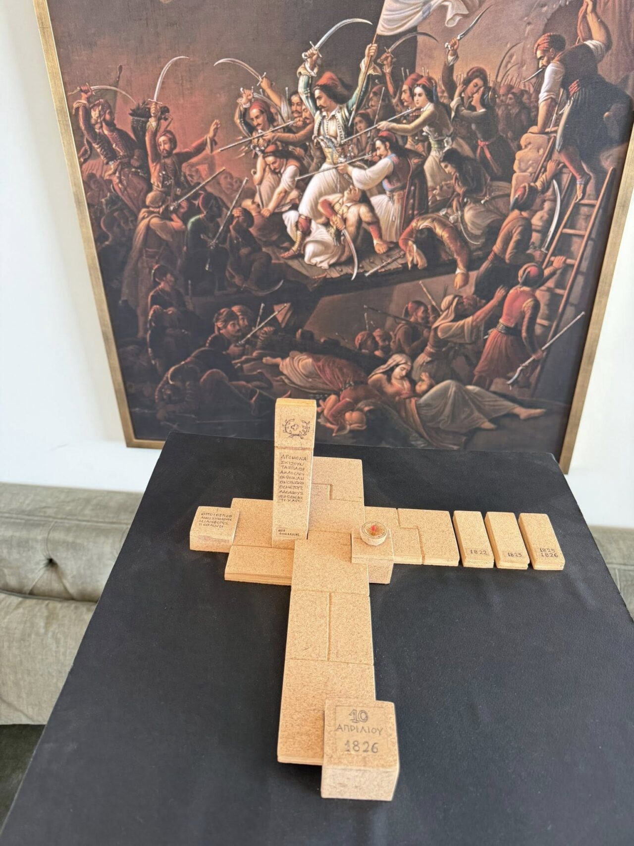 Θερμές ευχαριστίες στον Μεσολογγίτη καλλιτέχνη κ. Ρόμπολα, για τη φιλοτέχνηση του μνημείου και τη συμβολή του σε αυτή την προσπάθεια μνήμης και τιμής.»