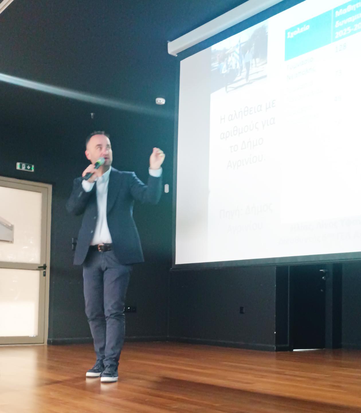 Η εκδήλωση πραγματοποιήθηκε στον συνεδριακό χώρο του 7ου Γυμνασίου Αγρινίου, με στόχο να αποτελέσει έναν ουσιαστικό χώρο προβληματισμού και δημόσιου διαλόγου για ένα από τα σημαντικότερα ζητήματα που αντιμετωπίζει σήμερα η ελληνική κοινωνία: τη δημογραφική συρρίκνωση και τις επιπτώσεις της στην ανάπτυξη της περιφέρειας και ειδικότερα της Δυτικής Ελλάδας.