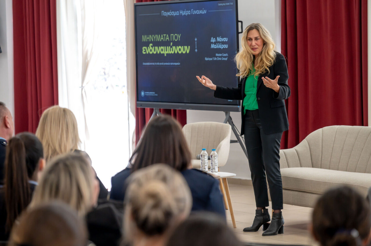 «Μηνύματα που ενδυναμώνουν» μετέφερε στις γυναίκες της ΕΛ.ΑΣ. η Master Coach και Ιδρύτρια της “Life Clinic Group”, Δρ. Νάνσυ Μαλλέρου. Η Δρ. Μαλλέρου αναφέρθηκε σε όλα τα στερεότυπα που επικρατούν στην ελληνική κοινωνία και στον σεξισμό που δέχονται οι γυναίκες σε όλους τους επαγγελματικούς χώρους, ακόμη και από εκπροσώπους του ίδιου φύλου. Όπως τόνισε, «από άνδρες περιμένουμε να είναι ηγέτης, ενώ από γυναίκα περιμένουμε να είναι πιο φροντιστική, γιατί αυτή η φιλοσοφία έχει αναπτυχθεί στην κοινωνία».
