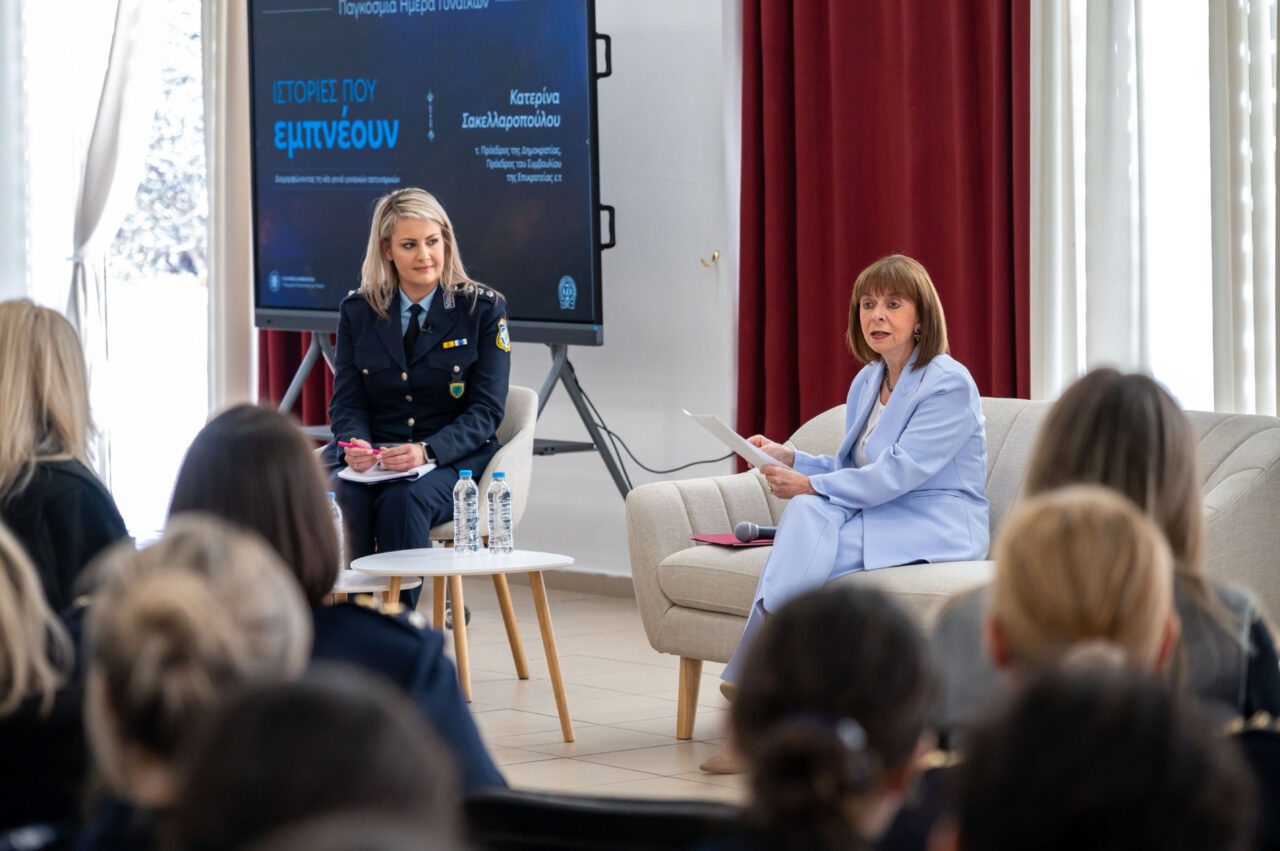 Την εκδήλωση τίμησε με την παρουσία της η τέως Πρόεδρος της Δημοκρατίας και Πρόεδρος του Συμβουλίου της Επικρατείας ε.τ., Κατερίνα Σακελλαροπούλου, η οποία κήρυξε την έναρξη της εκδήλωσης στην ενότητα «Ιστορίες που εμπνέουν». Με την εμπειρία της προσπάθησε να εμπνεύσει τις νέες γυναίκες της Αστυνομίας να πετυχαίνουν τους στόχους τους. Η ίδια αναφέρθηκε στα δικά της γυναικεία πρότυπα που τη διαμόρφωσαν. Στη μητέρα της, τις γιαγιάδες της, αλλά και στη Ρουθ Μπέιντερ Γκίνσμπεργκ (Ruth Bader Ginsburg) το πρώην Μέλος του Ανώτατου Δικαστηρίου των Ηνωμένων Πολιτειών που αποτέλεσε ξεχωριστή μορφή παγκοσμίως στον χώρο της δικαιοσύνης. Στην ομιλία της, μεταξύ άλλων, ανέφερε: «Υπήρξα η πρώτη γυναίκα Πρόεδρος του Συμβουλίου της Επικρατείας και η πρώτη γυναίκα ΠτΔ. Όταν ο Πρωθυπουργός ανακοίνωσε την πρότασή του, δήλωσα ότι στο πρόσωπό μου τιμάται η σύγχρονη Ελληνίδα. Κάτι που στη συνέχεια αντιλήφθηκα πολύ έντονα μέσα από την επαφή μου με τις γυναίκες στα ταξίδια μου, ιδιαίτερα στην επαρχία.