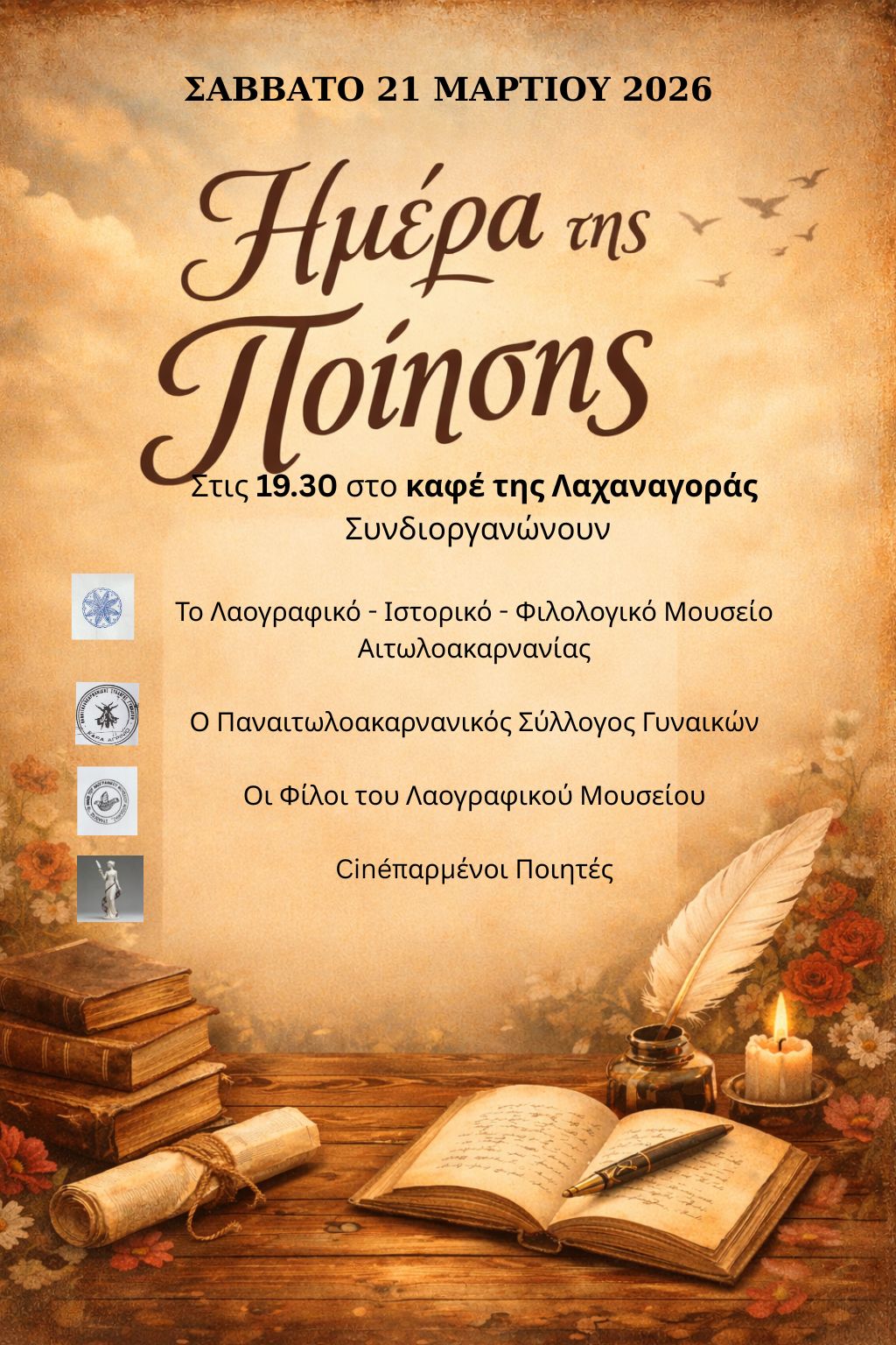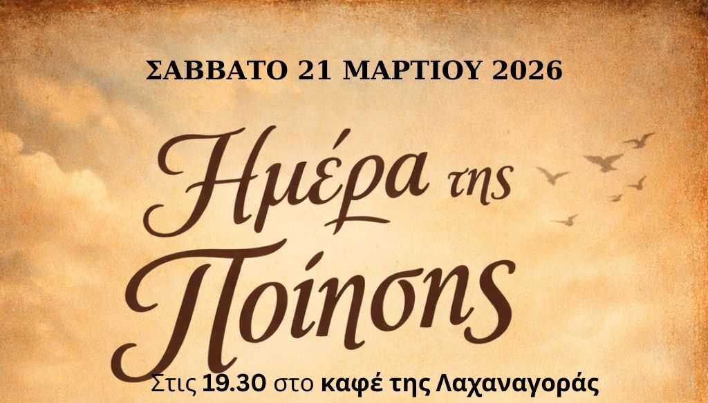 Το Σάββατο 21 Μαρτίου, στις 19.30, στο καφέ της Λαχαναγοράς ,σας περιμένουμε να γιορτάσουμε μαζί την ημέρα της ποίησης!