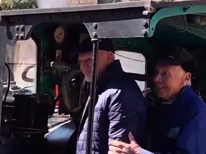 Ο πρώην πρόεδρος του ΠΑΣΟΚ επιβιβάστηκε, μάλιστα, στην ατμομηχανή του ιστορικού τρένου και χρησιμοποίησε με ρυθμικό τρόπο τη σφυρίχτρα.