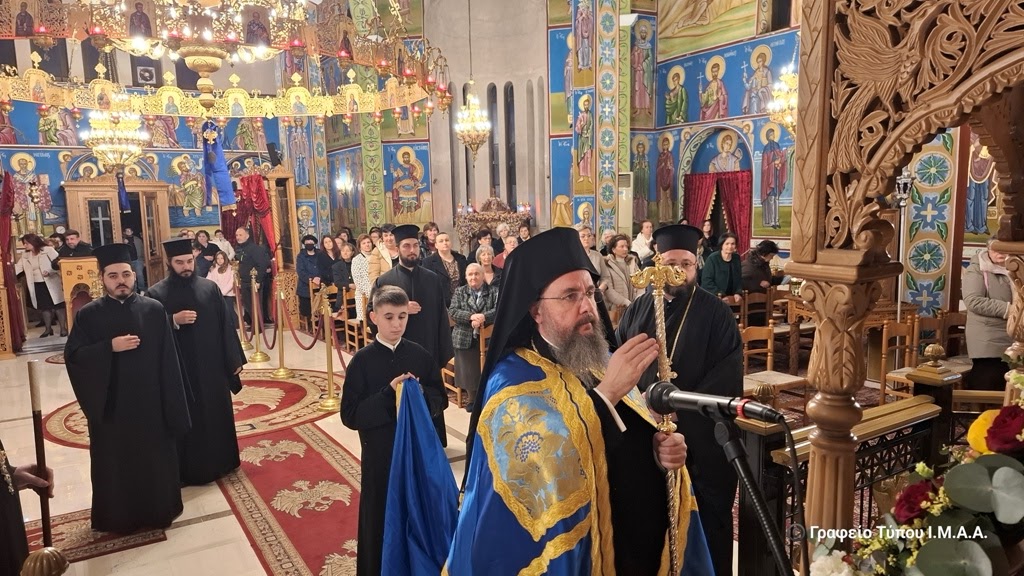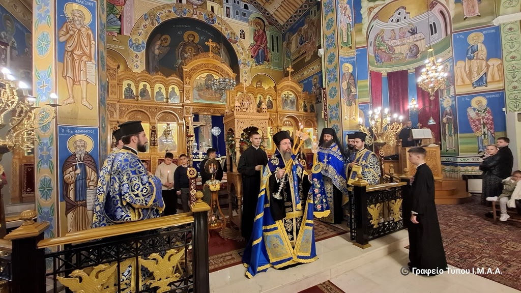 Νωρίτερα ο Σεβασμιώτατος χοροστάτησε στην Ακολουθία της Δ’ Στάσης των Χαιρετισμών προς την Υπεραγία Θεοτόκο και έψαλλε τους Οίκους των Χαιρετισμών ενώπιον της Εικόνας της Παναγίας, συμπαραστατούμενος από τον Ιεροκήρυκα, Αρχιμ. Νικηφόρο Ζήση, τον Προϊστάμενο του Ιερού Ναού και Αρχιερατικό Επίτροπο Παραβόλας, Πρωτοπρ. Σπυρίδωνα Ιωάννου, τον Αρχιδιάκονο Δημήτριο Λαγούδη και τους Διακόνους π. Σωκράτη Σχίζα και π. Βαρθολομαίο Κοσμά.