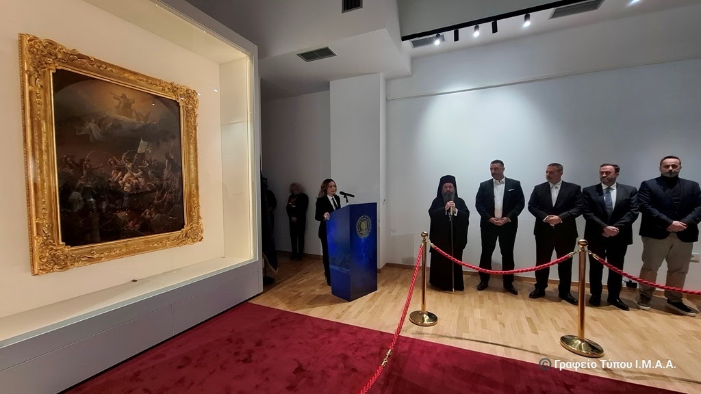 «Με ιδιαίτερη συγκίνηση και βαθύ σεβασμό στεκόμαστε απόψε στον χώρο αυτόν του πολιτισμού και της μνήμης, για να υποδεχθούμε ένα έργο που υπερβαίνει τα όρια της τέχνης και γίνεται φορέας ιστορίας, συλλογικής συνείδησης και εθνικού στοχασμού: τον αυθεντικό πίνακα «Η Έξοδος του Μεσολογγίου» του μεγάλου Έλληνα ζωγράφου Θεόδωρου Βρυζάκη.
