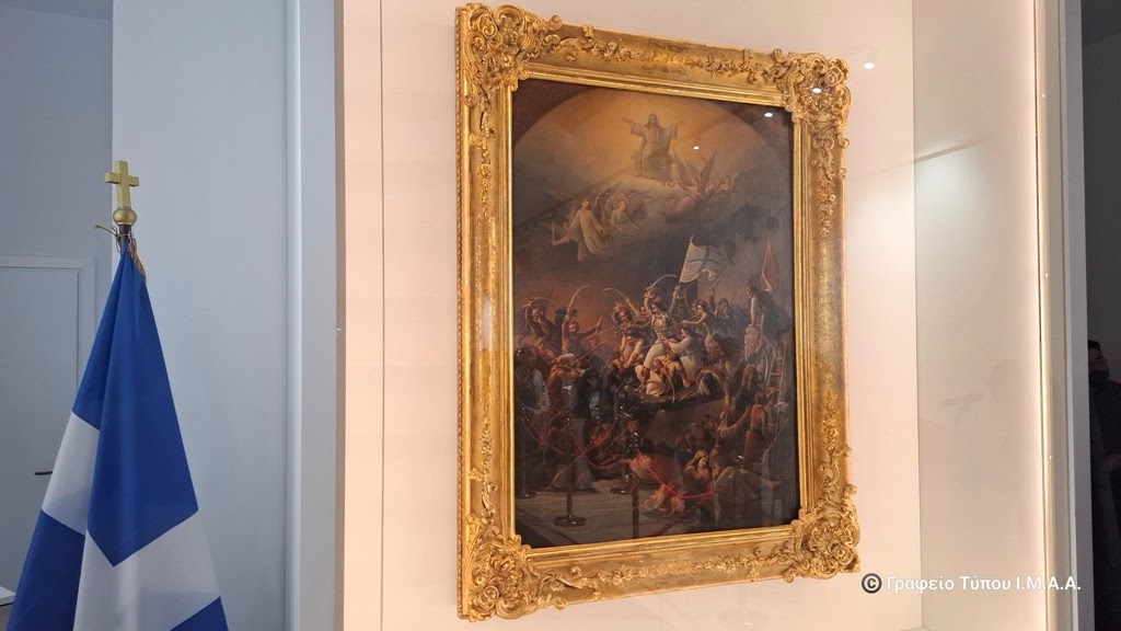 Η τελετή πραγματοποιήθηκε στο Τρικούπειο Πολιτιστικό Κέντρο, όπου και θα εκτεθεί το μνημειώδες έργο της νεοελληνικής τέχνης, στο πλαίσιο των εκδηλώσεων για τη διακοσιοστή επέτειο από την Έξοδο του Μεσολογγίου.