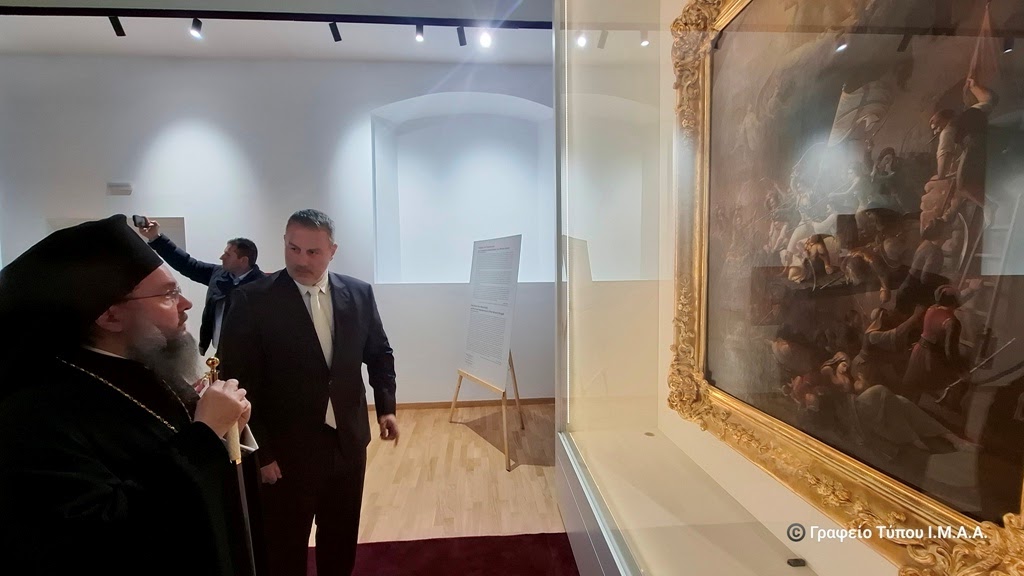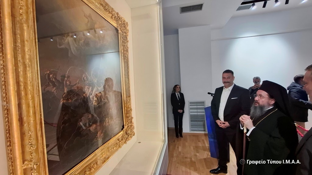 Στην επίσημη τελετή υποδοχή του αυθεντικού πίνακα «Η Έξοδος του Μεσολογγίου», του Θεοδώρου Βρυζάκη παρέστη ο Σεβασμιώτατος Μητροπολίτης Αιτωλίας και Ακαρνανίας κ. Δαμασκηνός το απόγευμα της Κυριακής, 22 Μαρτίου 2026 στην Ιερά Πόλη του Μεσολογγίου.