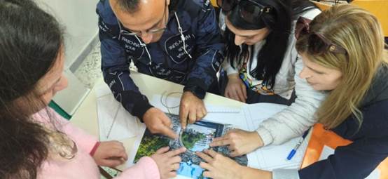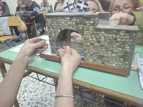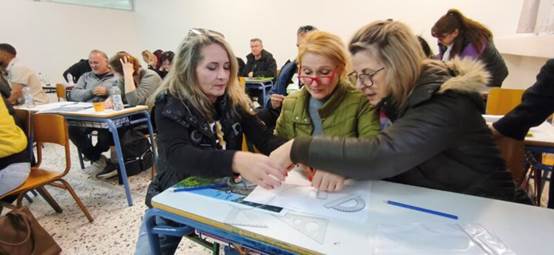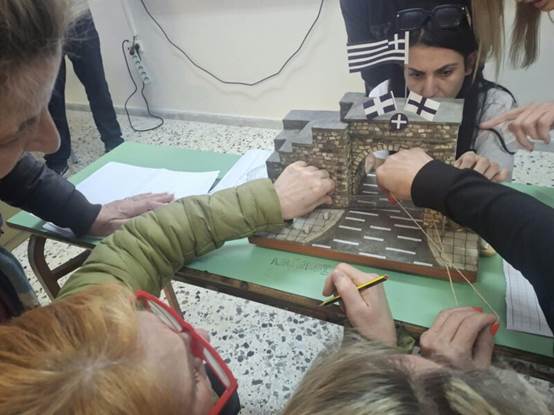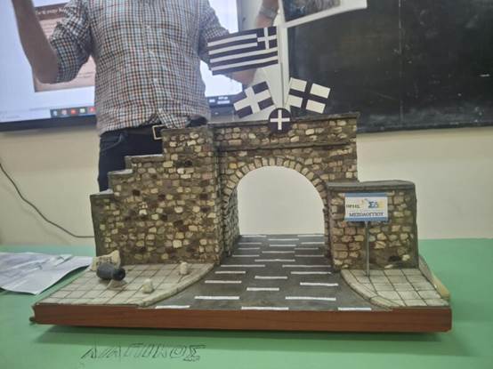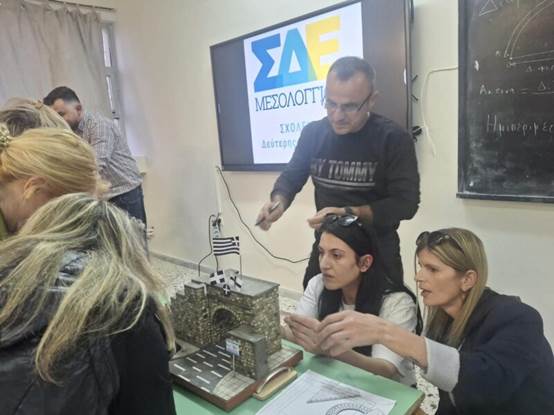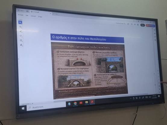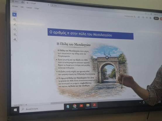 Η δράση κορυφώθηκε με μια ομαδική δραστηριότητα: Οι ομάδες εργάστηκαν πάνω σε φωτογραφίες της Πύλης του Μεσολογγίου και υπολόγισαν το μήκος του ημικυκλίου της στο χαρτί, αξιοποιώντας τον αριθμό π.