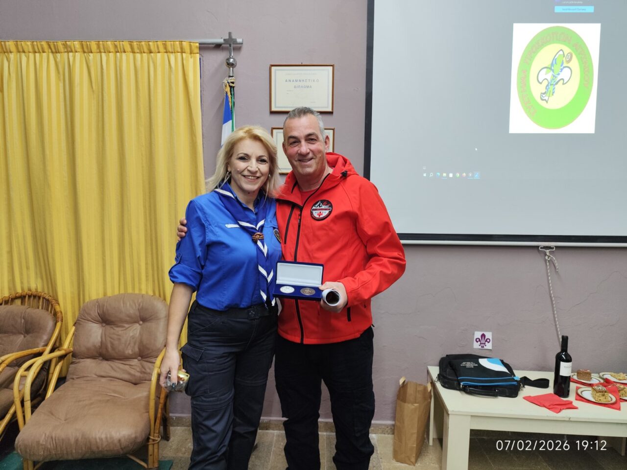 Στο πλαίσιο μιας σεμνής τελετής που πραγματοποιήθηκε στις εγκαταστάσεις του 1ου Συστήματος Προσκόπων Αγρινίου σε κλίμα αναγνώρισης του έργου των εθελοντών της ΕΟΕΔ Μεσολογγίου που προσφέρει ανεκτίμητη βοήθεια στην προστασία του φυσικού περιβάλλοντος και της ανθρώπινης ζωής. Η απονομή έγινε στο πλαίσιο της συνεργασίας των δύο πλευρών.