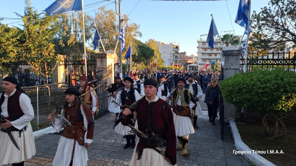 Τιμητική πομπή, με τη συμμετοχή της Μпάντας «Διονύσιος Σολωμός», θα κατευθυνθεί προς τον Κήπο των Ηρώων, με αφετηρία το Ιστορικό Μουσείο «ΔΙΕΞΟΔΟΣ», αποδίδοντας τιμές στο Μνημείο του Αθανασίου Ραζή–Κότσικα.