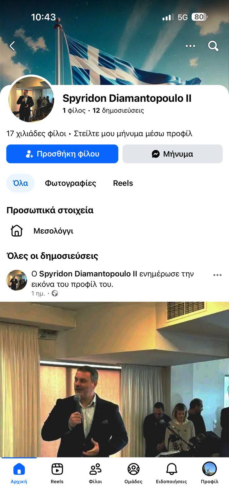 Πηγή: Σπύρος Διαμαντόπουλος: Άγνωστοι έφτιαξαν ψεύτικο προφίλ στο Facebook με τα στοιχεία του