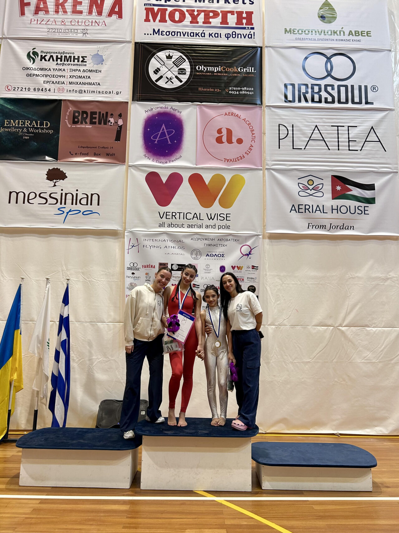 – Το χρυσό μετάλλιο κατέκτησαν οι Μελίνα Λάγιου και Ινόη Γουργολίτσα στην κατηγορία Aerial Silks Synchronised (γυναικών 16–17).