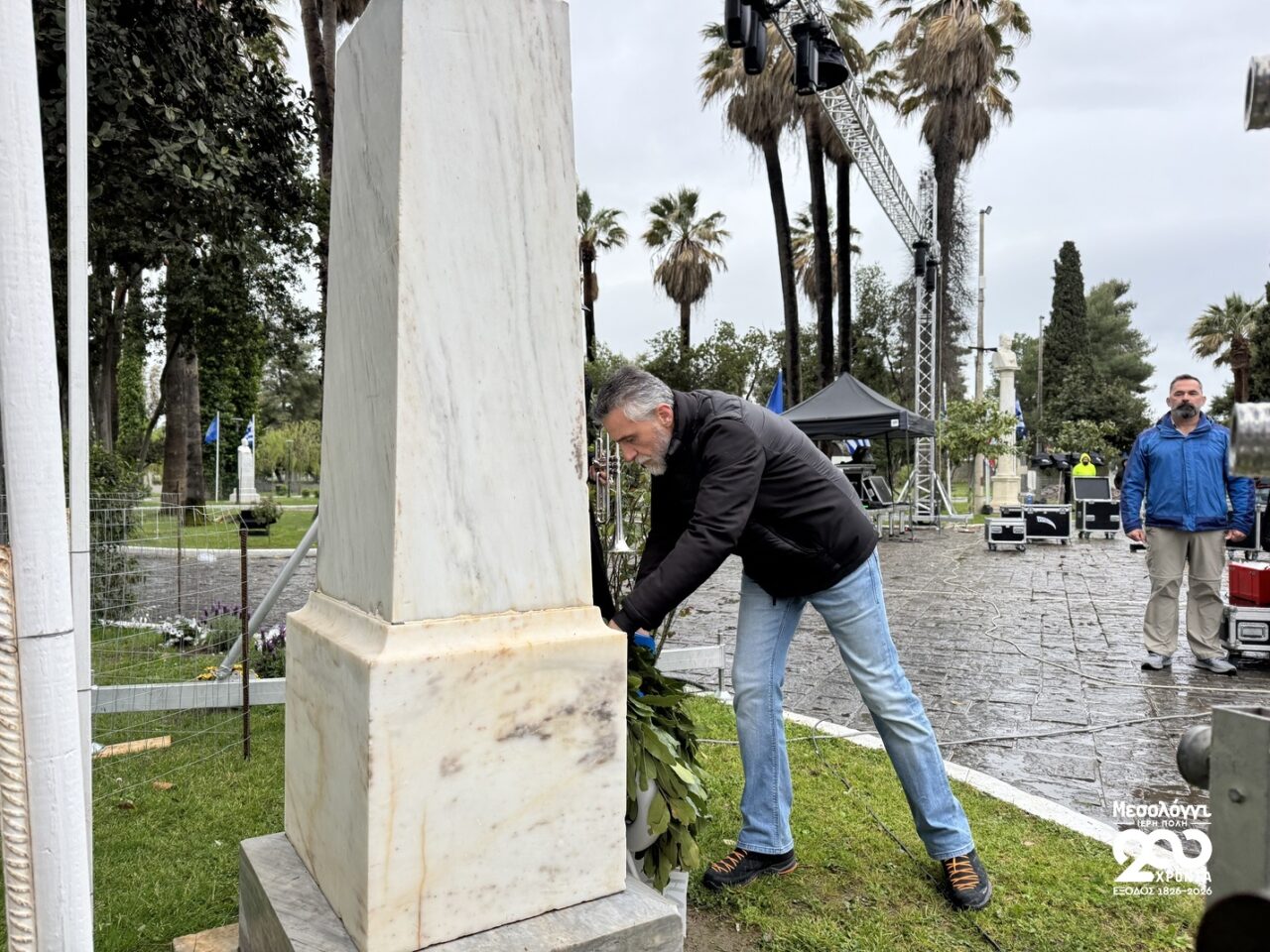 Σε κλίμα βαθιάς συγκίνησης πραγματοποιήθηκε χθες, Τετάρτη 1 Απριλίου 2026, η κατάθεση στεφάνων στην προτομή του Αρχηγού των Μεσολογγιτών, Αθανασίου Ραζηκότσικα. Παρά τη ματαίωση της προγραμματισμένης εκδήλωσης για την «Ημέρα του Αρχηγού» λόγω των προβλεπόμενων δυσμενών καιρικών συνθηκών, ο Σύλλογος «Οι Φίλοι της Μουσικής Διονύσιος Σολωμός» και το Ιστορικό Μουσείο «Διέξοδος» τήρησαν το καθιερωμένο ραντεβού με την ιστορία, αποδίδοντας τον ελάχιστο φόρο τιμής στον μεγάλο αγωνιστή.
