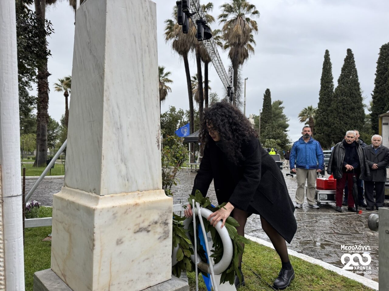 Στη σεμνή τελετή που έλαβε χώρα, στεφάνι κατέθεσαν ο Δήμαρχος της Ιεράς Πόλεως Μεσολογγίου, κ. Σπυρίδων Διαμαντόπουλος, η εκπρόσωπος του Ιστορικού Μουσείου «Διέξοδος», κ. Δήμητρα Καρέτσου, ο Πρόεδρος του Συλλόγου «Οι Φίλοι της Μουσικής Διονύσιος Σολωμός», κ. Τάκης Φωλιάς, ο Πρόεδρος του «Ιστορικού Συλλόγου Ιεράς Πόλεως Μεσολογγίου» κ. Νάσος Αγγελόπουλος, καθώς και ο εκπρόσωπος του «Ομίλου Απογόνων Αγωνιστών και Ιστορικών Γενών της Ελλάδος» κ. Θεόδωρος Κωτσάκης.