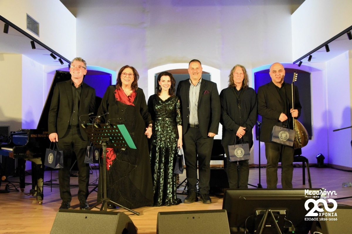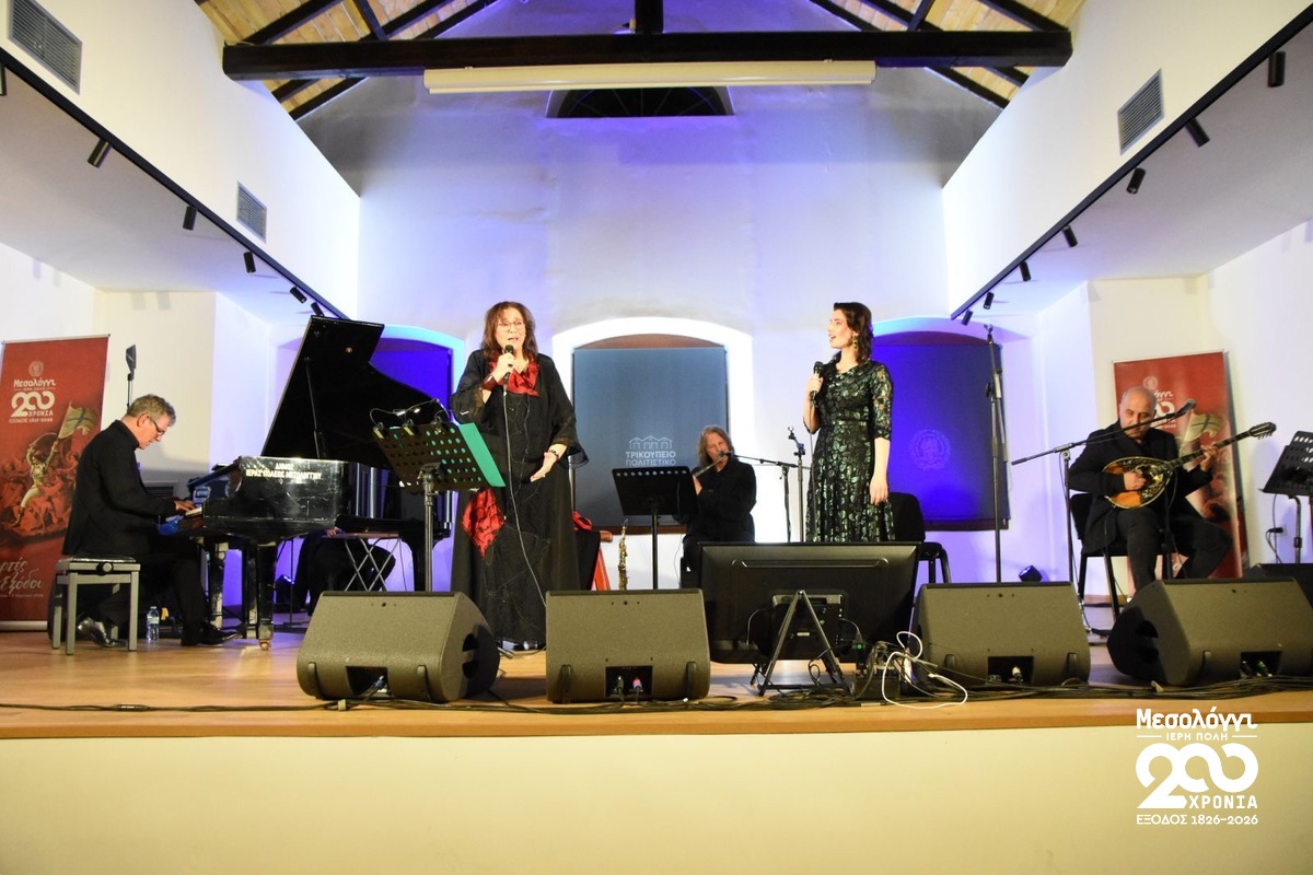 Η παρουσία της Μαρίας Φαραντούρη στον ιερό τόπο της θυσίας λειτούργησε ως μια ζωντανή γέφυρα ανάμεσα στο ιστορικό παρελθόν και τη σύγχρονη πραγματικότητα, υπενθυμίζοντας πως το μήνυμα του Μεσολογγίου παραμένει διαχρονικό και επίκαιρο. Στο πλευρό της, μια ομάδα εξαιρετικών σολίστ προσέδωσε μοναδικό βάθος στο μουσικό αποτέλεσμα: ο Αχιλλέας Γουάστωρ στο πιάνο με την απαράμιλλη δεξιοτεχνία του, ο Ηρακλής Ζάκκας στο μπουζούκι που μετέφερε τον αυθεντικό λαϊκό ήχο της πατρίδας μας και ο David Lynch στα πνευστά, ο οποίος με το σαξόφωνο και το φλάουτο πρόσθεσε μια λυρική, ατμοσφαιρική διάσταση. Η συμμετοχή της Vivian Douglas συμπλήρωσε αρμονικά τη βραδιά, αναδεικνύοντας τον πολυδιάστατο χαρακτήρα της εκδήλωσης.