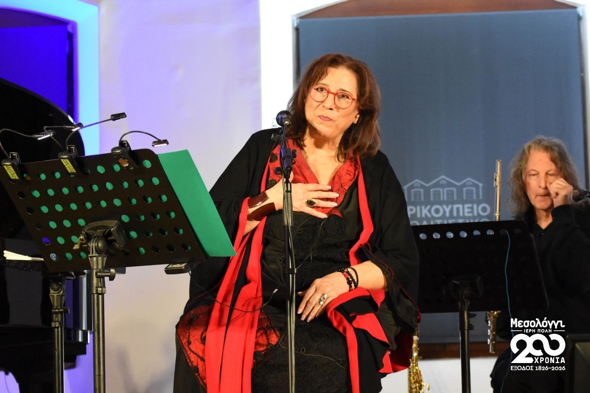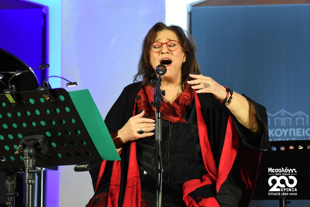 Η κορυφαία ερμηνεύτρια στάθηκε στο επίκεντρο των Εορτών Εξόδου, δίνοντας νέα πνοή στους στίχους των μεγάλων μας ποιητών. Μέσα από τη δωρική της ερμηνεία, ζωντάνεψαν οι αξίες της αρετής και της τόλμης, οι οποίες αποτελούν τον αμετακίνητο θεμέλιο λίθο της ηρωικής επετείου των 200 ετών από την Έξοδο της Φρουράς των Ελευθέρων Πολιορκημένων (1826 – 2026).
