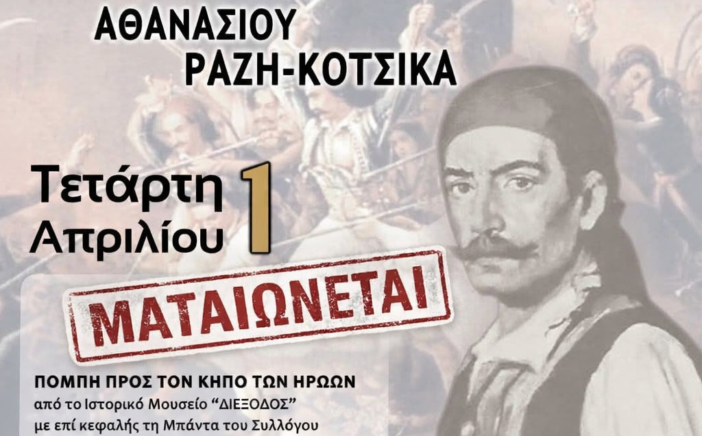Ως ελάχιστο φόρο τιμής, οι συμμετέχοντες φορείς και θεσμοί θα καταθέσουν στεφάνι στην προτομή του Αρχηγού των Μεσολογγιτών, Αθανασίου Ραζηκότσικα.