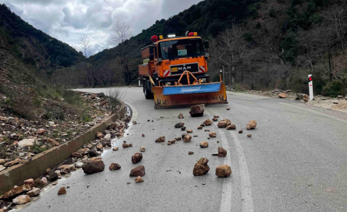 Με συντονισμένες ενέργειες και συνεχή παρουσία στο πεδίο, τα συνεργεία εργάζονται εντατικά για τον καθαρισμό του οδοστρώματος από φερτά υλικά και την απομάκρυνση επικίνδυνων βράχων, διασφαλίζοντας την προσβασιμότητα και την προστασία των διερχόμενων οδηγών