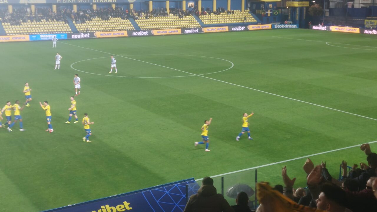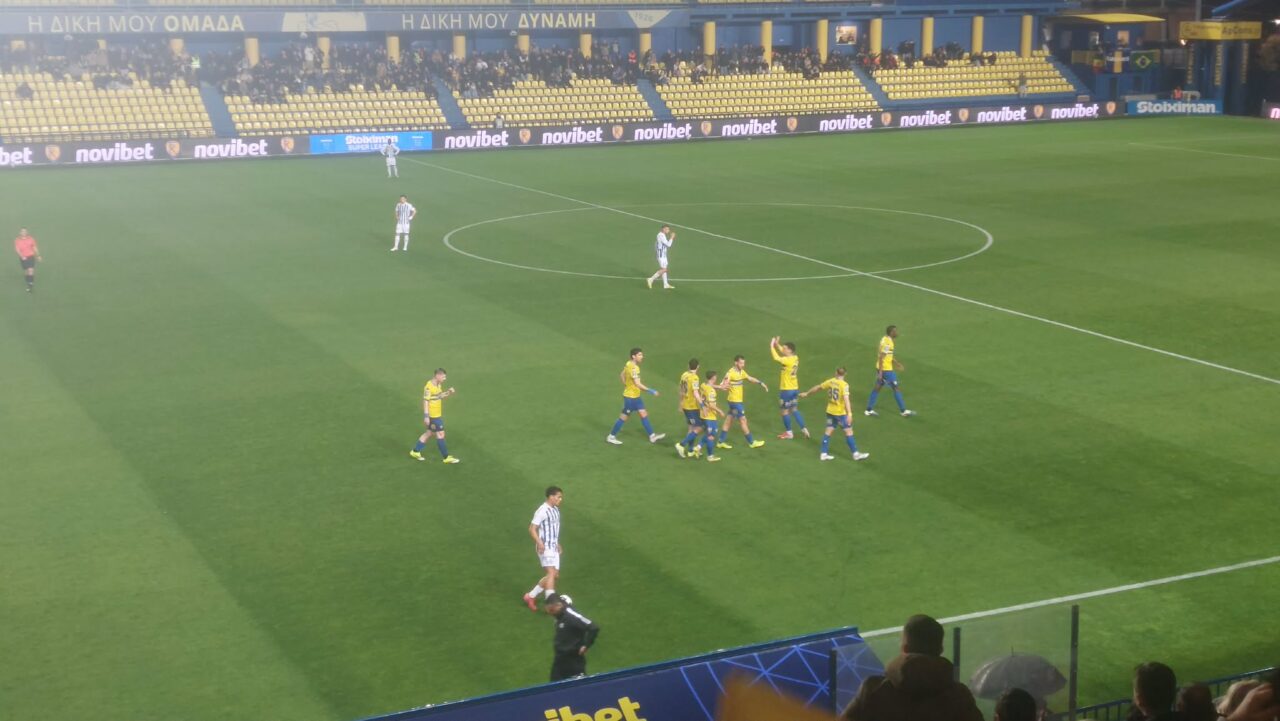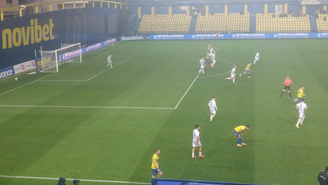 Μια άστοχη κεφαλιά στο 44ο λεπτό για τον Ατρόμητο Αθηνών από τον Σταυρόπουλο