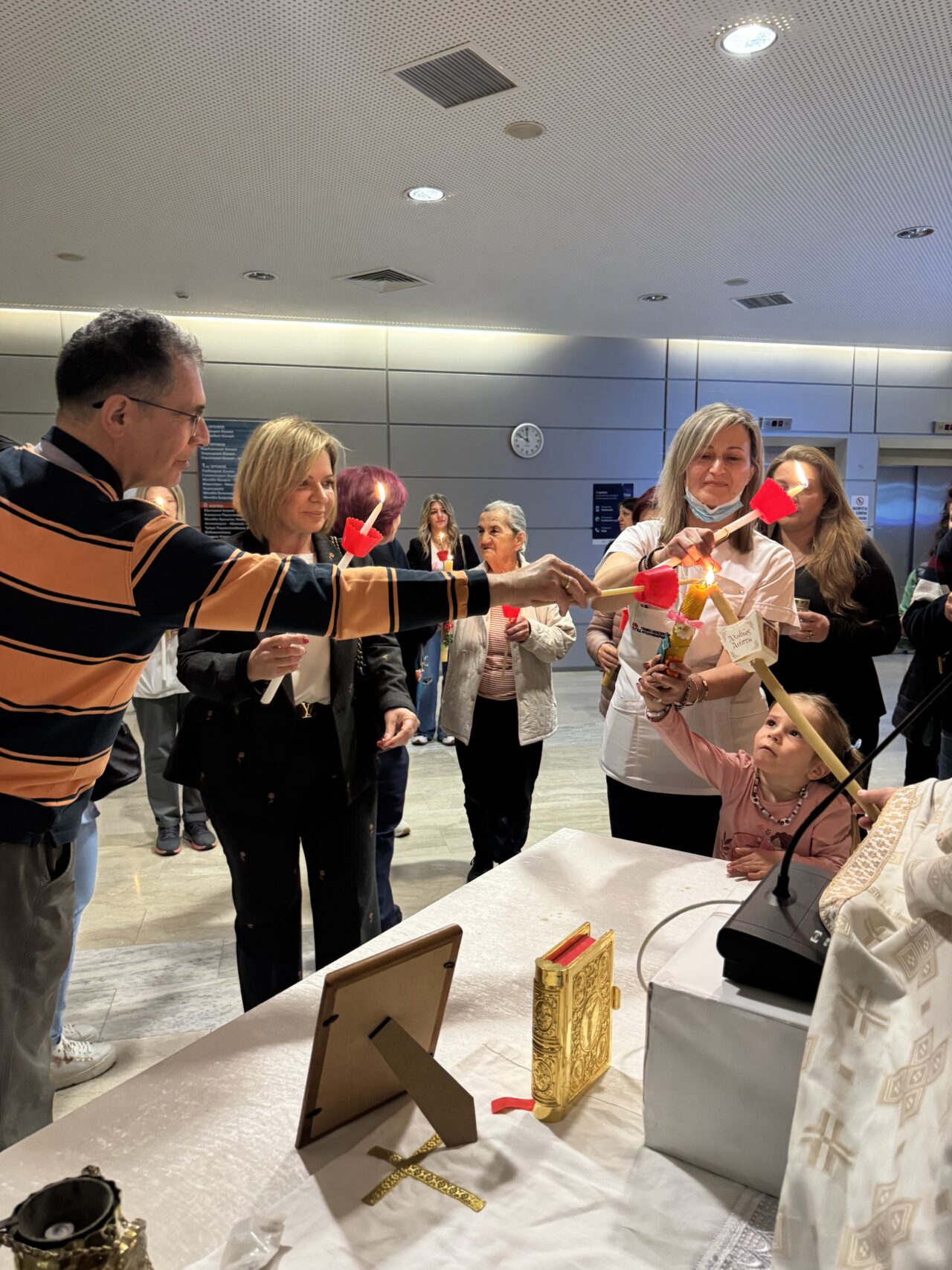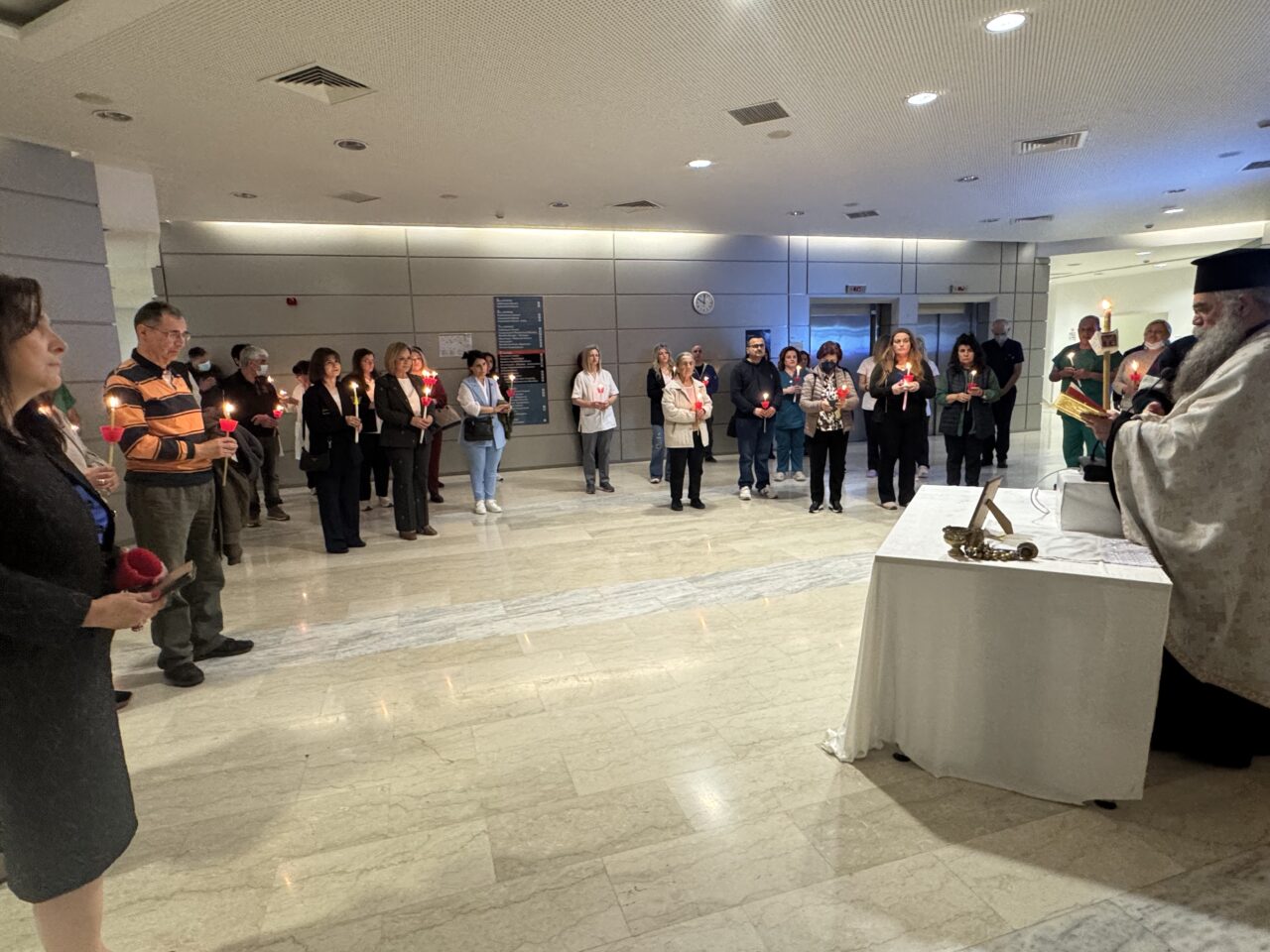 Στη συνέχεια, όπως κάθε χρόνο, επισκέφθηκε το Γενικό Νοσοκομείο Αγρινίου, όπου παρέστη στην τελετή της Αναστάσεως που πραγματοποιήθηκε στον χώρο του νοσοκομείου και αντάλλαξε ευχές με ιατρούς, νοσηλευτές, εργαζόμενους, ασθενείς και συνοδούς, εκφράζοντας την ευγνωμοσύνη και τη στήριξή της σε όσους εργάζονται και νοσηλεύονται αυτές τις Άγιες Ημέρες.