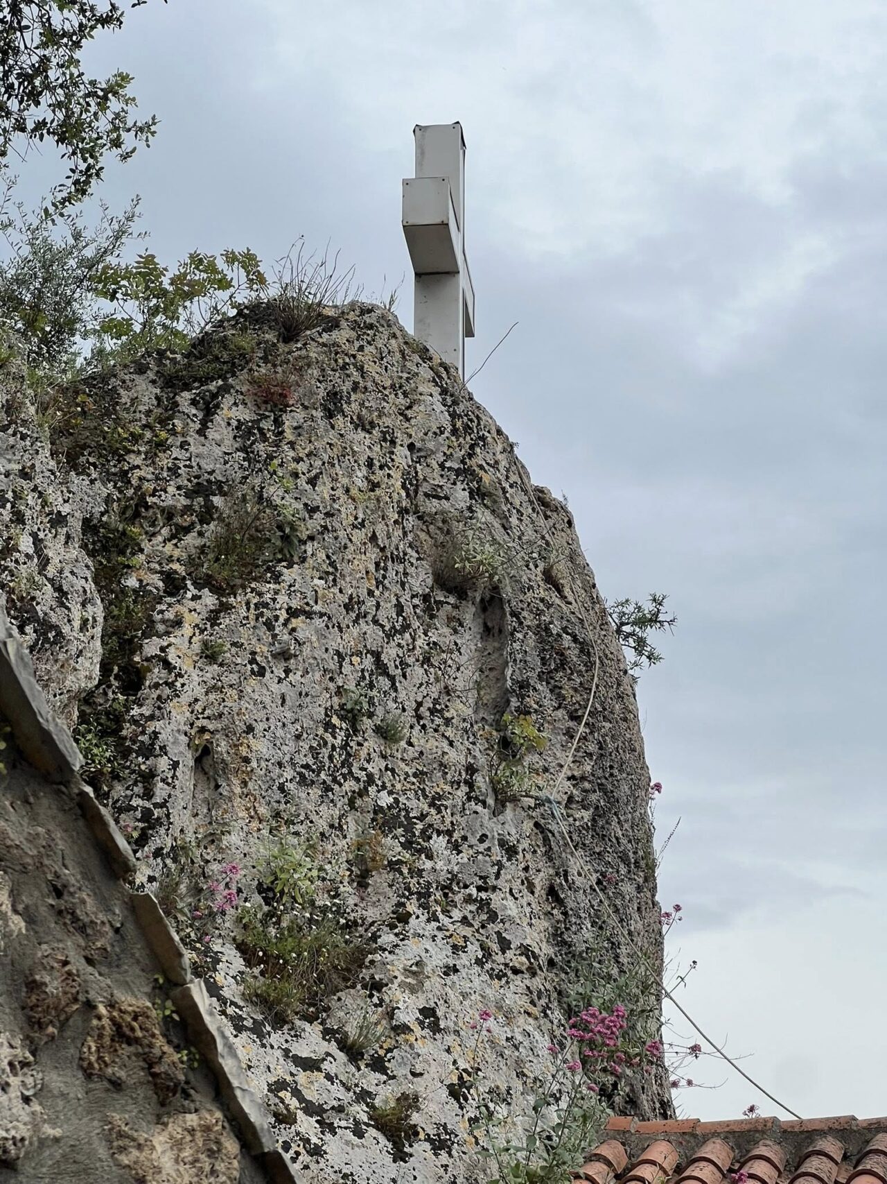 Ο ναΐσκος της Παναγίας Ελεούσας που προβάλλει στην άκρη του βράχου με υπέροχη θέα τον κάμπο της Κάτω Μυρτιάς και τη λίμνη Τριχωνίδα. Δύο μικρά σπήλαια μέσα στο βράχο δημιουργούν ένα είδος δίκοχου δίκλινου ναΐσκου.