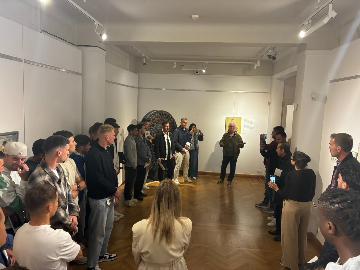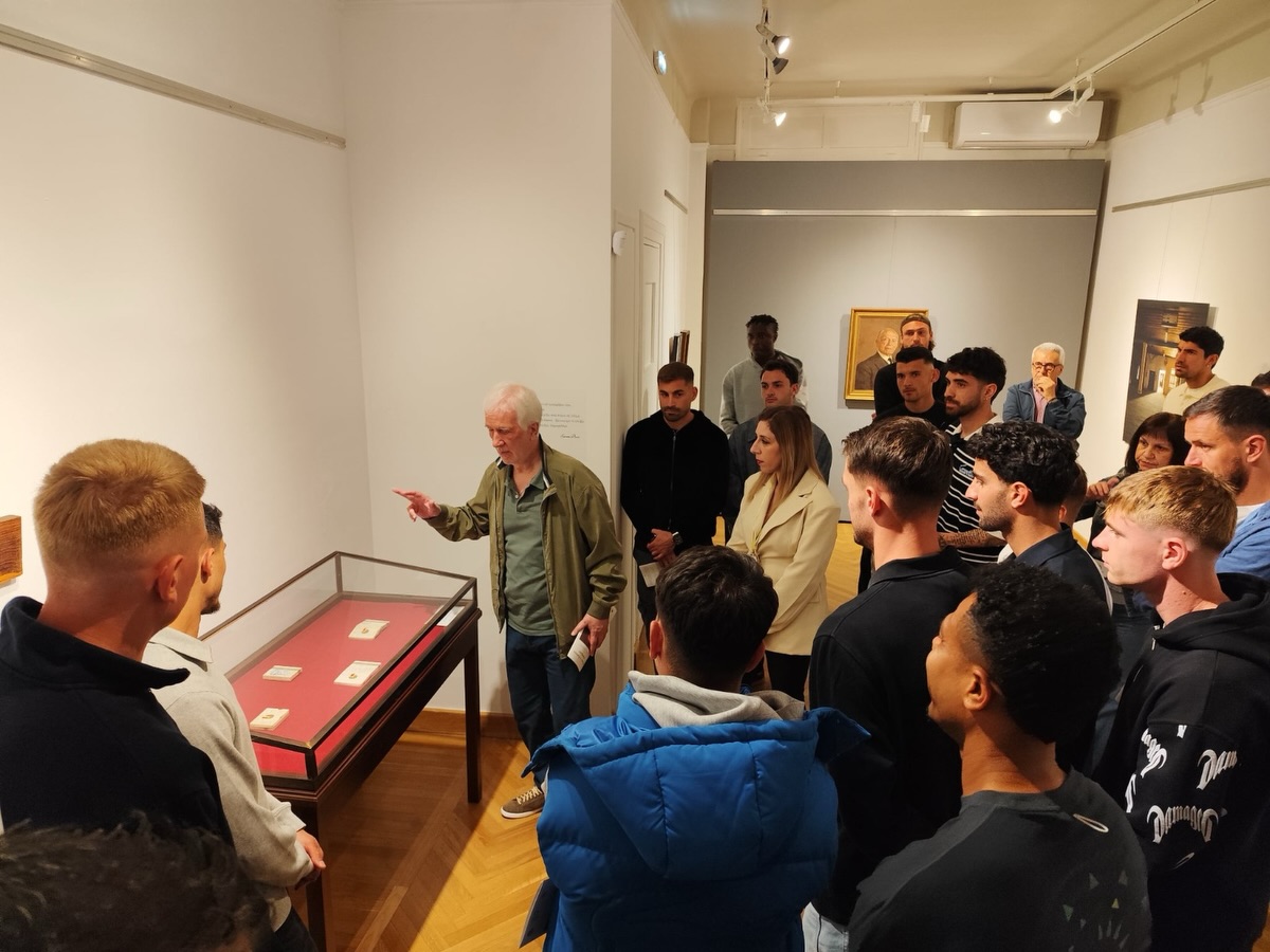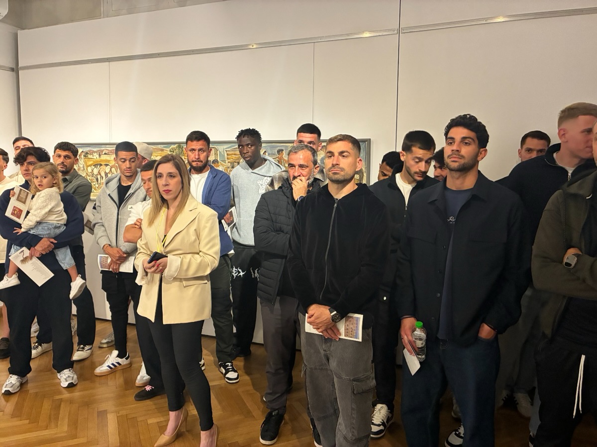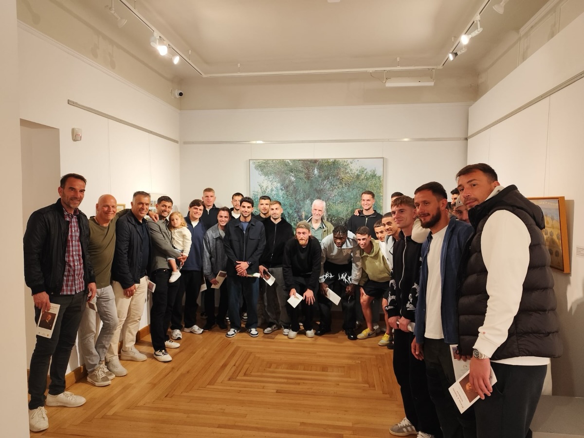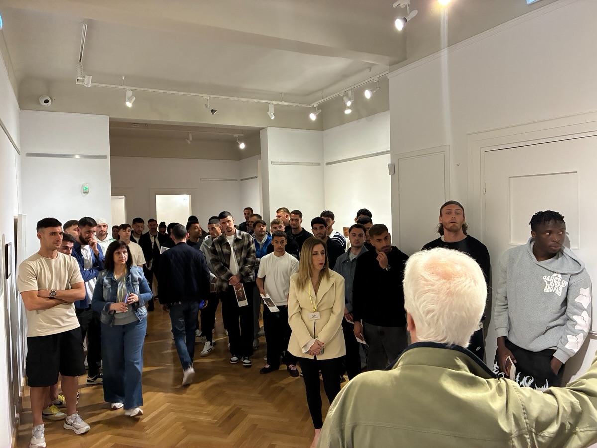 Η έκθεση εντάσσεται στο πλαίσιο εορτασμού των 100 χρόνων του Συλλόγου και ο καλλιτεχνικός διευθυντής Χρήστος Γαρουφαλής ξενάγησε τεχνικό επιτελείο και ποδοσφαιριστές, δίνοντας πληροφορίες για τα έργα διακεκριμένων εικαστικών που θα βρίσκονται στη διάθεση του κοινού έως τις 5 Ιουλίου.