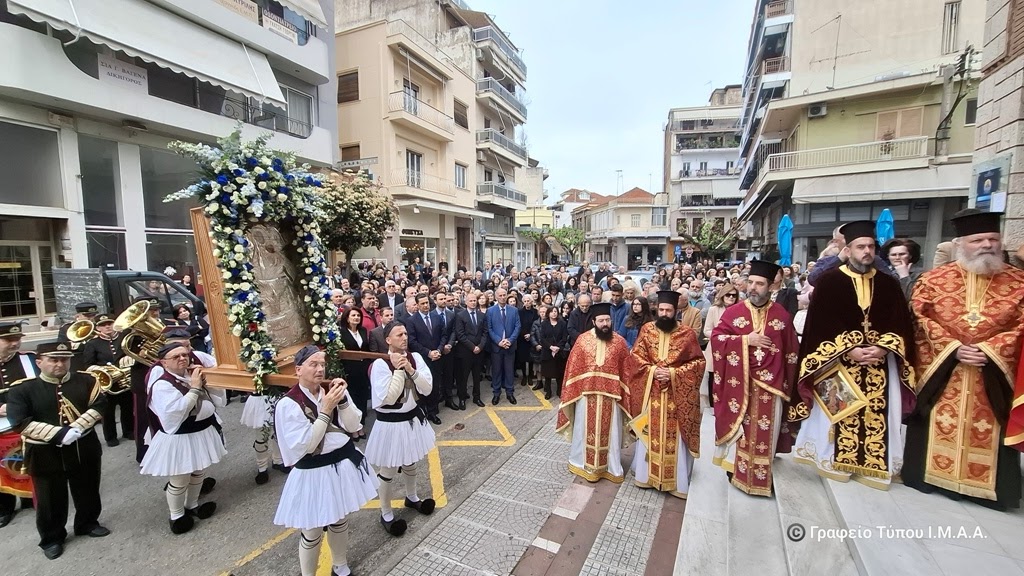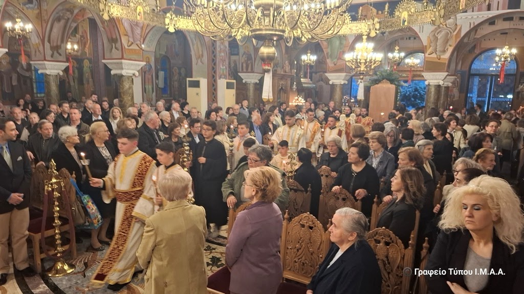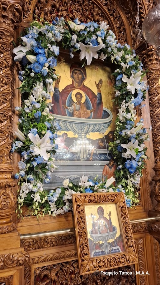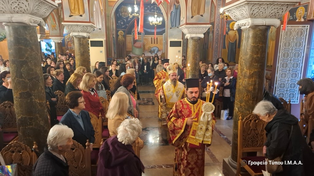 Κατά την επιστροφή στον Ιερό Ναό ο Σεβασμιώτατος Ποιμενάρχης μας ευχαρίστησε τους Ιερείς και τα στελέχη της Ενορίας για την προετοιμασία της ιεράς πανηγύρεως, ευχόμενος η Υπεραγία Θεοτόκος να προστατεύει και να σκέπει ολόκληρη την πόλη.