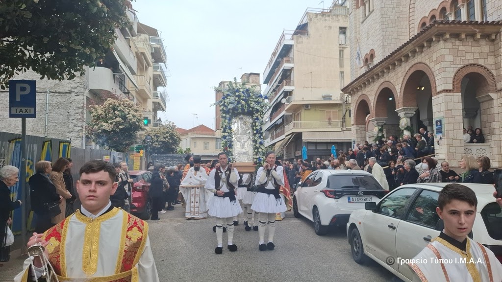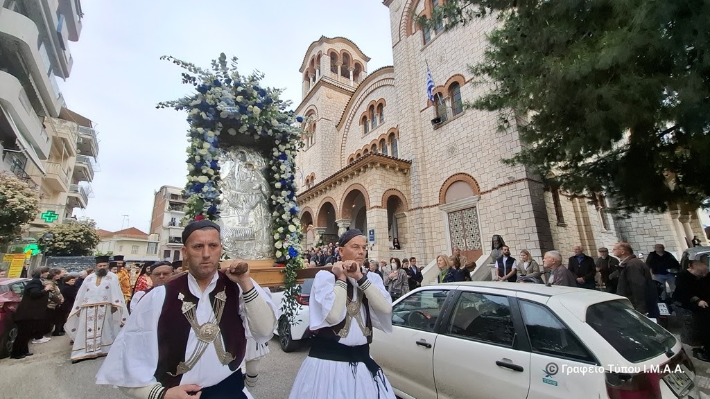 Αμέσως μετά την Θεία Λειτουργία, ακολούθησε, η λιτάνευση της εφεστίου και θαυματουργού Εικόνας της Ζωοδόχου Πηγής στους κεντρικούς δρόμους της Ενορίας. Έλαβαν μέρος η Φιλαρμονική του Δήμου Αγρινίου, αντιπροσωπεία του Ερυθρού Σταυρού και μέλη πολιτιστικών Συλλόγων της πόλεως.