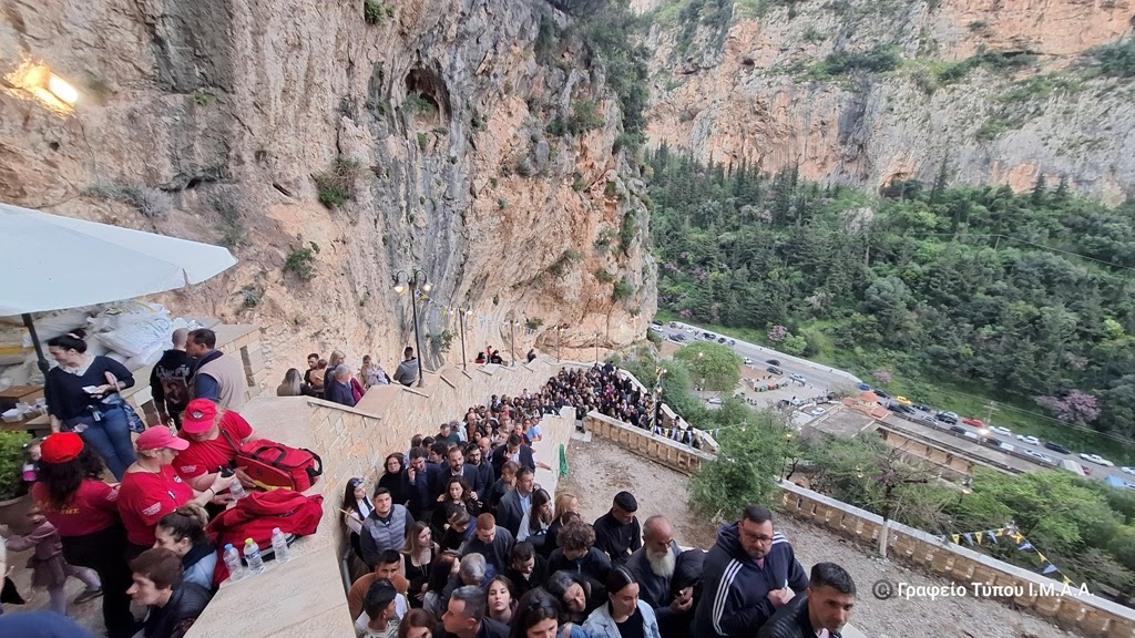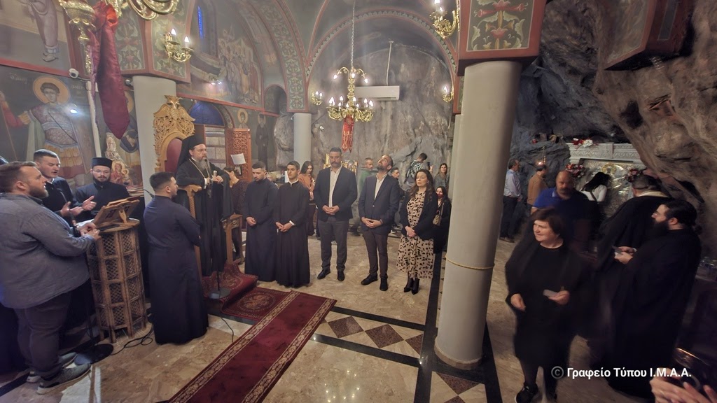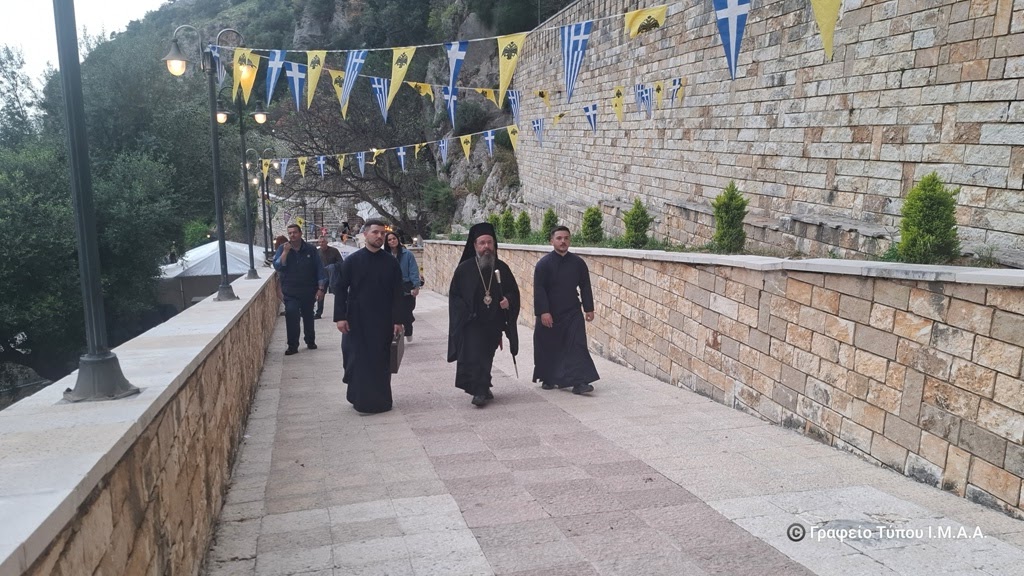 Το απόγευμα της Παρασκευής της Διακαινησίμου, ο Σεβασμιώτατος Μητροπολίτης Αιτωλίας και Ακαρνανίας κ. Δαμασκηνός μετέβη στο βραχομονάστηρο της Αγίας Ελεούσης, που βρίσκεται στο κακοτράχαλο φαράγγι της Κλεισούρας, στην αρχή του όρους Αράκυνθος, βορειοδυτικά του Μεσολογγίου. Χοροστάτησε στην ακολουθία του Μεθέορτου Εσπερινού και του Παρακλητικού Κάνονος της Υπεραγίας Θεοτόκου, στο Καθολικό της πανηγυρίζουσας Ιεράς Μονής και μίλησε στους πολυπληθείς προσκυνητές που συρρέουν κατά εκατοντάδες για να προσκυνήσουν την Ιερά και Θαυματουργό Εικόνα της Παναγίας της Ελεούσης, μεταξύ των οποίων ήταν ο Περιφερειάρχης Δυτικής Ελλάδος κ. Νεκτάριος Φαρμάκης και ο Αντιπεριφερειάρχης Αιτωλοακαρνανίας κ. Θανάσης Μαυρομμάτης.