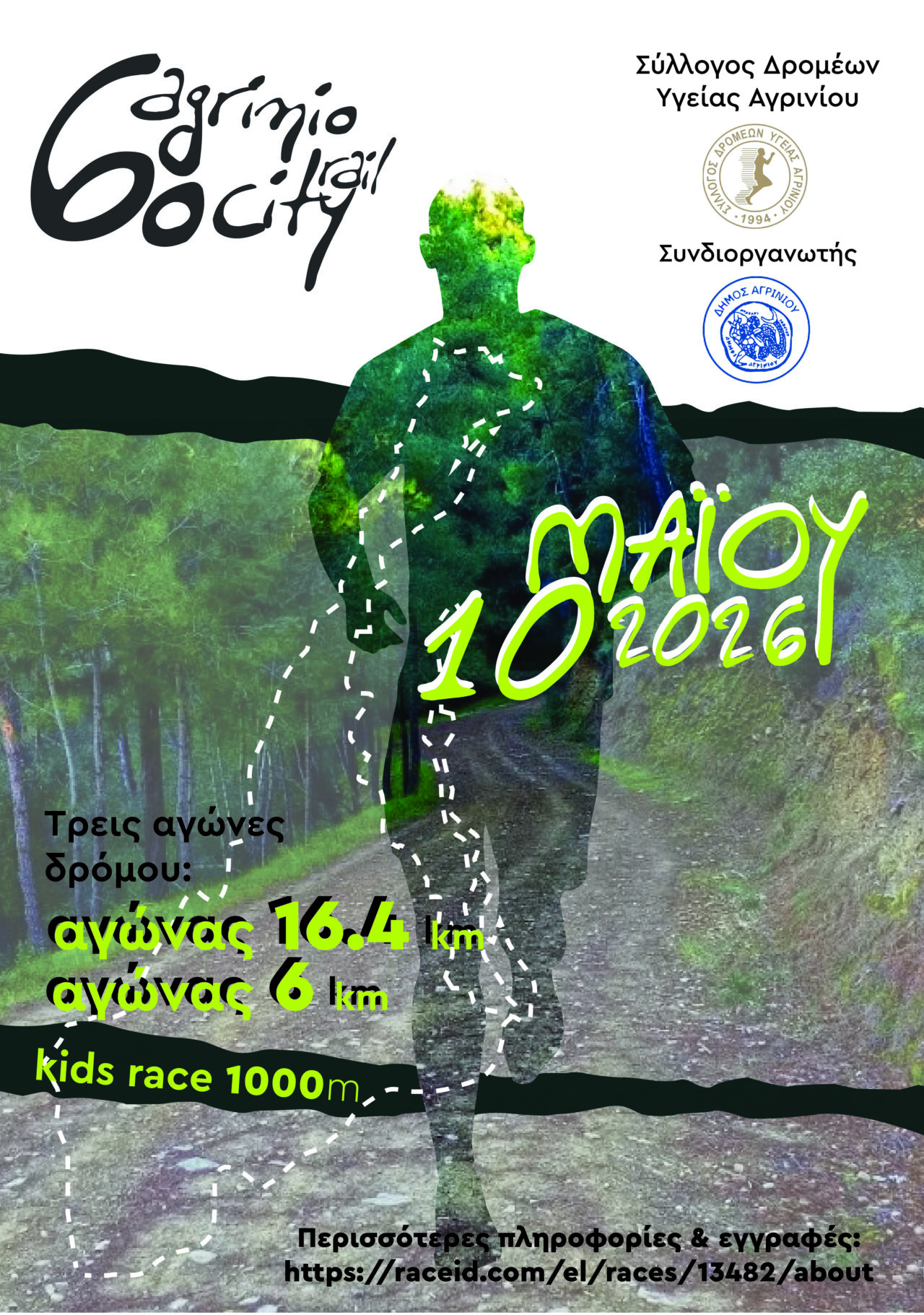 Ο Σύλλογος Δρομέων Υγείας Αγρινίου προσκαλεί όλους όσοι αγαπούν τον αθλητισμό και τον εθελοντισμό να συμμετάσχουν ως εθελοντές στο 6ο City Trail Agrinio, που θα πραγματοποιηθεί στις 9 & 10 Μαΐου στο Αγρίνιο, στο πλαίσιο των εκδηλώσεων προς τιμήν του Πολιούχου Αγίου Χριστοφόρου.