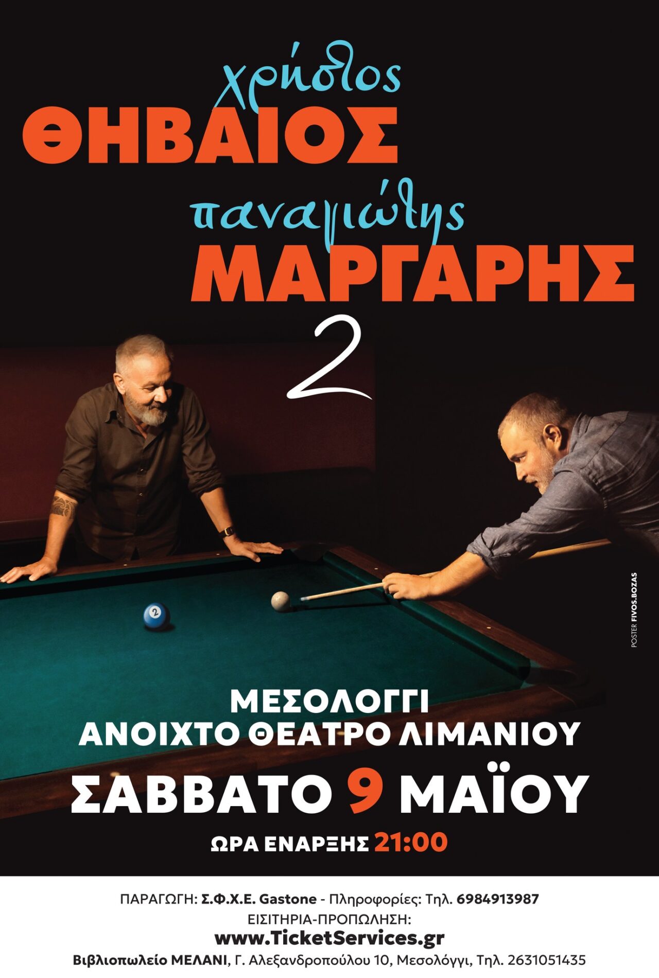 Μετά την πρόσφατη παρουσία τους που ενθουσίασε το κοινό στο Αγρίνιο, ο Χρήστος Θηβαίος και ο Παναγιώτης Μάργαρης θα βρεθούν στο Μεσολόγγι, στο Ανοιχτό Θέατρο Λιμανιού, στις 9 Μαΐου!
