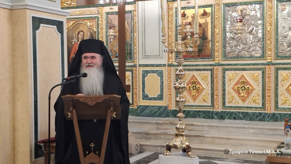 Προσκεκλημένος του Σεβασμιώτατου Ποιμενάρχου μας κ. Δαμασκηνού ήταν ο Σεβασμιώτατος Μητροπολίτης Νέας Κρήνης και Καλαμαριάς κ. Ιουστίνος, ο οποίος ανέπτυξε το θέμα: «”Ηρώων και Αγίων αγώνας” – Πατριωτικοί αγώνες και πνευματικά αθλήματα».