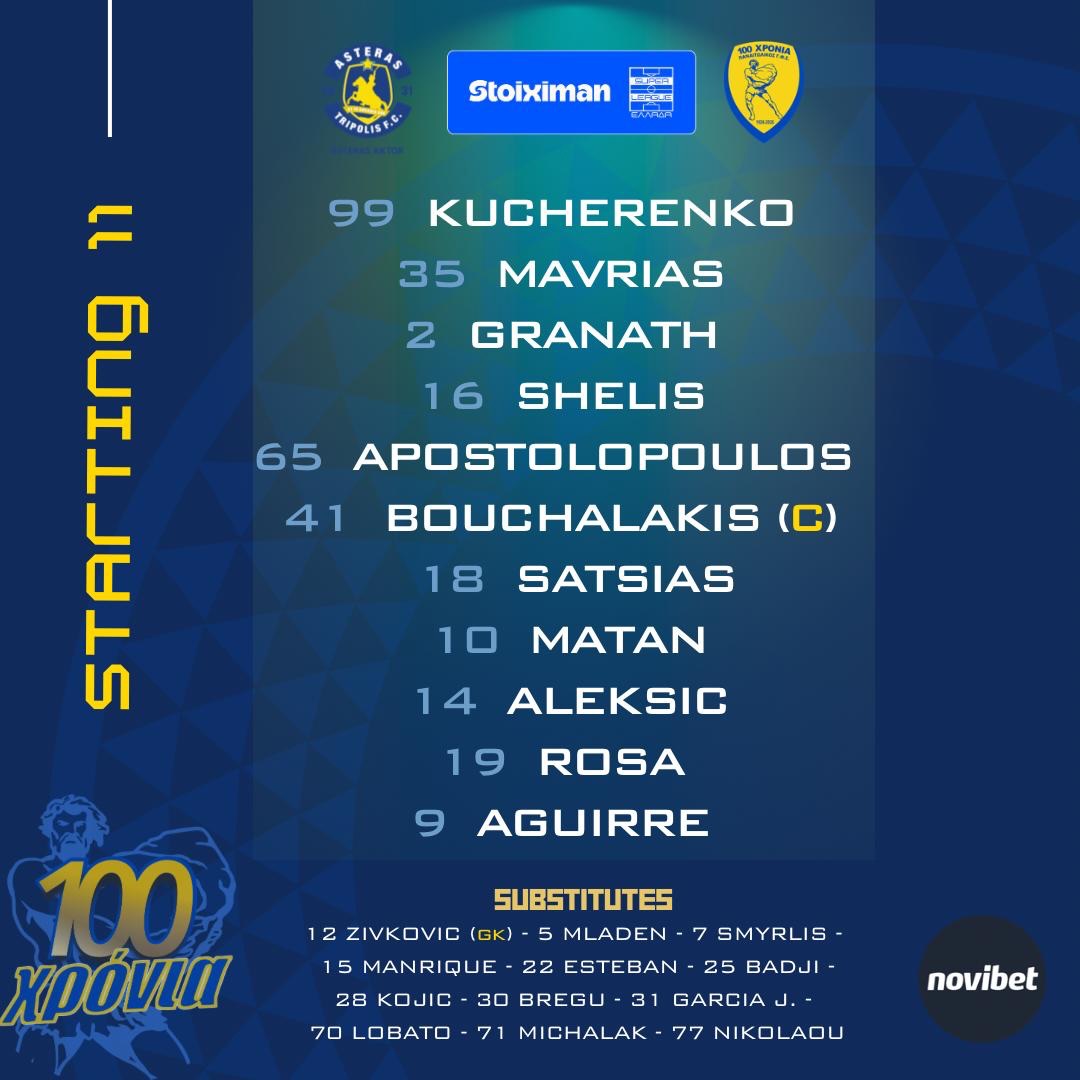 Αστέρας AKTOR: Χατζηεμμανουήλ, Σιλά, Τερεζίου, Ιβάνοφ, Μεντιέτα, Μουνιόθ, Τζανδάρης, Λάσκαρης, Καλτσάς, Όκο, Μίτροβιτς, Σιμόνι.