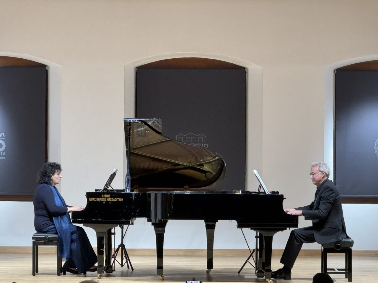 Με απόλυτη επιτυχία πραγματοποιήθηκε χθες, Παρασκευή 24 Απριλίου, στο Τρικούπειο Πολιτιστικό Κέντρο, η συναυλία «Μουσικός διάλογος για δύο πιάνα», μια εκδήλωση αφιερωμένη στον κορυφαίο Έλληνα συνθέτη Νίκο Σκαλκώτα.
