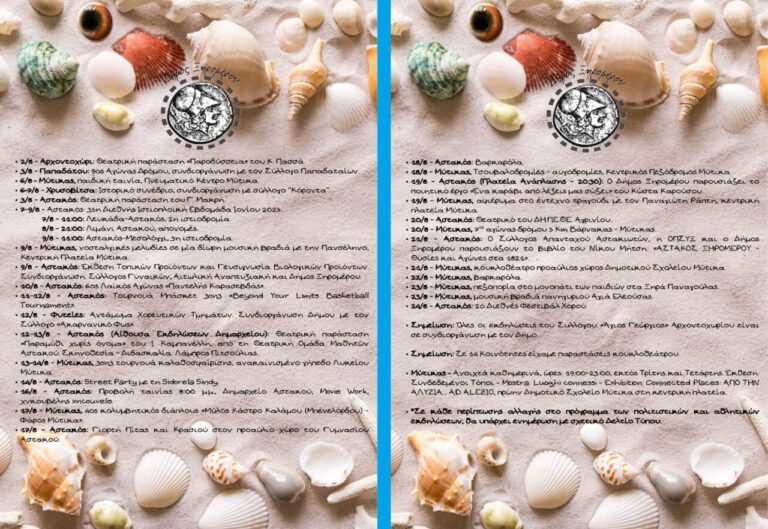 Δήμος Ξηρομέρου: Πολιτιστικές και αθλητικές εκδηλώσεις για το μήνα Αύγουστο – Το πρόγραμμα