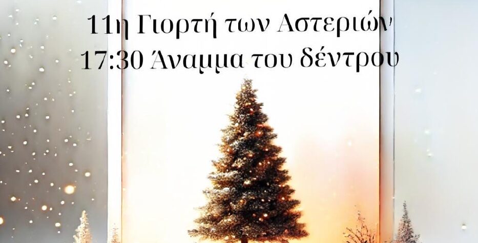 Αυτή την Κυριακή, 14 Δεκεμβρίου θα πραγματοποιηθεί στο Παναιτώλιο Αγρινίου, η 11η Γιορτή των Αστεριών, μία λαμπρή εκδήλωση που συνοδεύεται με το άναμμα του χριστουγεννιάτικου δέντρου. Μια ξεχωριστή χριστουγεννιάτικη βραδιά ετοιμάζει ο Δήμος Αγρινίου και η Κοινότητα Παναιτωλίου, σε συνεργασία με την Ένωση Γυναικών Παναιτωλίου «Η Τριχωνίδα». Την Κυριακή 14 Δεκεμβρίου 2025, στην πλατεία της […]