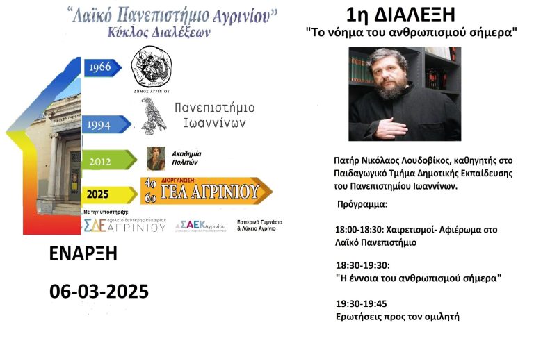 Το 4ο και το 6ο ΓΕΛ Αγρινίου ενημερώνουν πως την Πέμπτη 6 Μαρτίου και όχι στις 27-02 ξεκινά το «Λαϊκό Πανεπιστήμιο»